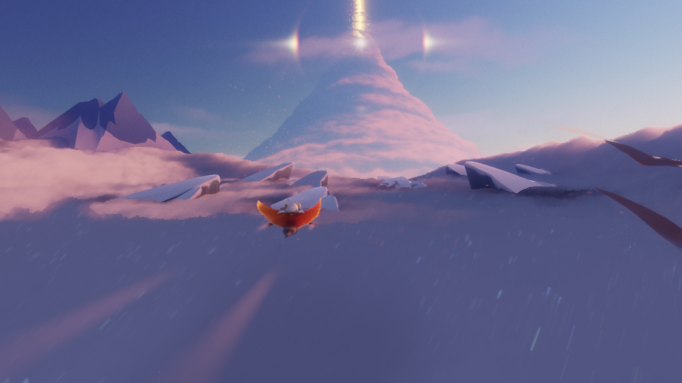 Sky come meccanica fondamentale presenta il dover accendere candele per proseguire nei livelli e interagire con il resto dei giocatori, poiché è stata inserita un’importante componente online. Esse sono da sempre state sinonimo di illuminazione, di visione e chiarezza, tuttavia non sappiamo quale dei significati Jenova Chen voglia comunicarci. La simbologia, forte è sempre presente, consente a ogni utente di poter rappresentare ciò che vuole e dare il significato che più lo appaghi. Svelato il vostro cammino, ben presto scoprirete la meccanica importante di Sky: spiccare il volo. Inizialmente compirete dei balzi verso l’alto con un energia limitata, che verrà consumata se non continua a essere alimentata dalle farfalle. La parte più significativa sarà quando raggiungerete delle isole fluttuanti e potete muovervi fra le nuvole: in quel momenti, Sky raggiunge l’apice.