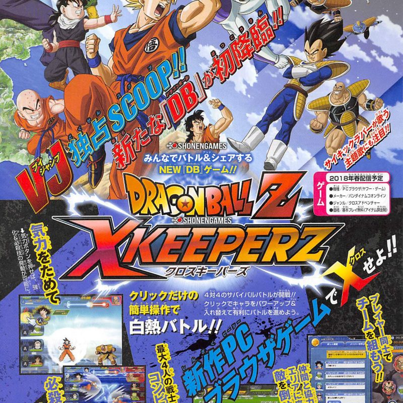 Come spesso avviene per molti anime famosi, Bandai Namco Online sta progettando un nuovo gioco chiamato Dragon Ball Z X Keeperz. Il titolo sarà disponibile solo per PC e potrà essere giocato gratuitamente sul proprio broswer. Questo annuncio proviene dall’ormai noto Weekly Shonen Jump, sul quale sono state pubblicate diverse informazioni iniziali. Il titolo avrà combattimenti 4 vs 4 , come già accaduto in altri giochi del passato (Dragonball Tenkaichi Tag Team). Il tutto sarà basato principalmente sul cliccare sullo schermo al momento giusto per accumulare energia e rilasciare attacchi combinati, da qui il nome X o Cross. Oltre al singleplayer, ci sarà anche una componente multi giocatore. Cosa ne pensate di questo nuovo prodotto? Ci giocherete?