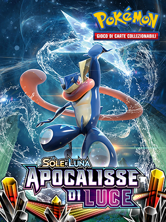 Necrozma continua a cogliere il mondo dei Pokémon di sorpresa con l’espansione Sole e Luna – Apocalisse di Luce del GCC Pokémon! Il possente e misterioso Pokémon leggendario è riapparso sotto una nuova forma, UltraNecrozmaGX. Gli altri Pokémon si stanno già radunando per accogliere questa nuova luce… o cercare di resisterle. LucarioGX, GreninjaGX, Zygarde-GX, Yveltal-GX, NaganadelGX e perfino Volcanion e il maestoso Arceus dovranno decidere da che parte stare. Questa incredibile espansione porta con sé un sacco di fortissime carte stella prisma che sono così potenti che puoi averne soltanto una con lo stesso nome nel tuo mazzo e dopo averle utilizzate finiranno nella zona perduta per non tornare mai più. I giocatori avranno anche la possibilità di utilizzare fantastici Pokémon e carte Aiuto originari della stupefacente regione di Kalos. Scopri incredibili Pokémon e tesori misteriosi nell’espansione Sole e Luna – Apocalisse di Luce!