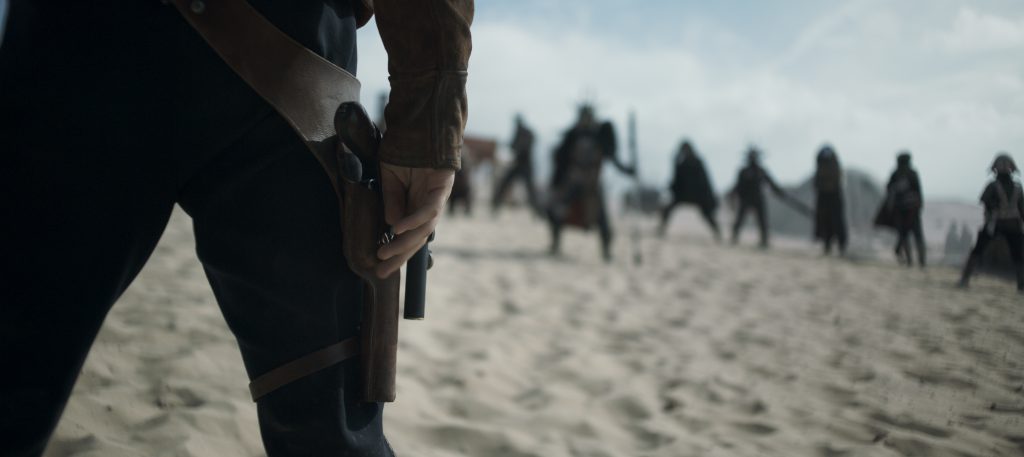 Inutile investire troppe parole su fotografia ed effetti speciali: entrambi sono assolutamente da manuale. Alcune inquadrature sono di una bellezza mozzafiato: che ci sia un enorme deserto sconfinato o che sia una ripresa allโ€™interno di una malfamata locanda, la macchina da presa sa esattamente come trasmettere lโ€™emozione adeguata alla situazione. Un esempio tra tutti il tavolo da gioco visto anche nei trailer, dove Lando ed altri criminali si trovano a scommettere in una specie di poker spaziale. Alcuni fotogrammi sono tanto belli da poter essere un quadro. Le scelte stilistiche sono sempre appropriate e gridano โ€œStar Warsโ€ ad ogni occasione. Bello poter finalmente vedere il Millennium Falcon in tutto il suo splendore, prima che diventasse la nave a cui tutti si riferiscono come โ€œvecchia ferragliaโ€. Bellissimi anche gli effetti speciali ma, volendo essere onesti, questa non รจ affatto una sorpresa. Nulla รจ lasciato al caso. Dove la colonna sonora di questo film potrebbe essere un bellissimo disco da ascoltare in cuffia, le inquadrature potrebbero tranquillamente essere raccolte in una mostra dedicata alla Saga.