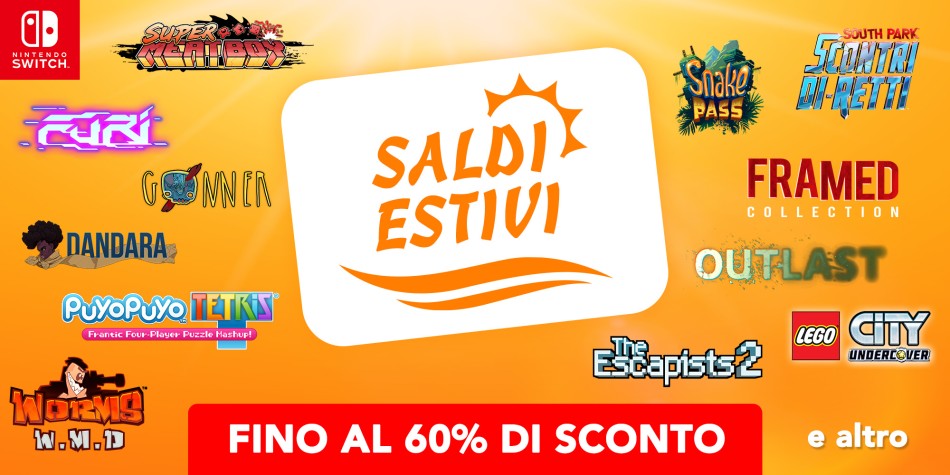 Dopo essere partiti sul PlayStation Store proprio ieri, adesso anche Nintendo annuncia l’inizio dei saldi estivi per Nintendo Switch. Tantissimi titoli sono disponibili a prezzo scontato, come Puyo Puyo Tetris, Outlast: Bundle of Terror, South Park: Scontri Di-Retti o LEGO City Undercover. Ovviamente molti altri giochi sono acquistabili a prezzi ribassati, perciò vi consigliamo di controllare il sito ufficiale di Nintendo Italia per scoprire di più. Ma affrettatevi, perché le occasioni dureranno fino al 9 agosto 2018 alle ore 23:59. Ma le novità non finiscono qui: anche su Nintendo 3DS molte opere sono in offerta, come Luigi’s Mansion 2, Super Mario Maker per 3DS o Animal Crossing: New Leaf. Restate connessi su VMAG per non perdere ulteriori informazioni.