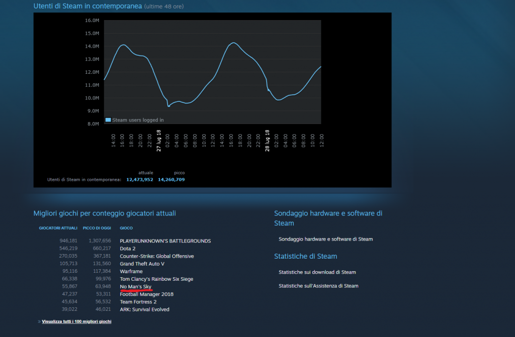 L’espansione NEXT ha introdotto molte novità in No Man’s Sky, tra cui il multiplayer e la visuale in terza persona, e migliorato il sistema di generazione casuale dei pianeti. A quanto pare gli utenti hanno apprezzato molto queste aggiunte, infatti il numero di giocatori connessi è aumentato vertiginosamente. In questo momento il titolo può vantare di essere il settimo più giocato su Steam, con ben 60.000 utenti connessi in contemporanea. Questo è un ottimo risultato per Hello Games, tuttavia dovremo vedere se questo entusiasmo sarà temporaneo, come al lancio del prodotto nel 2016, o duraturo. Voi che ne pensate? Il successo di No Man’s Sky NEXT è meritato?