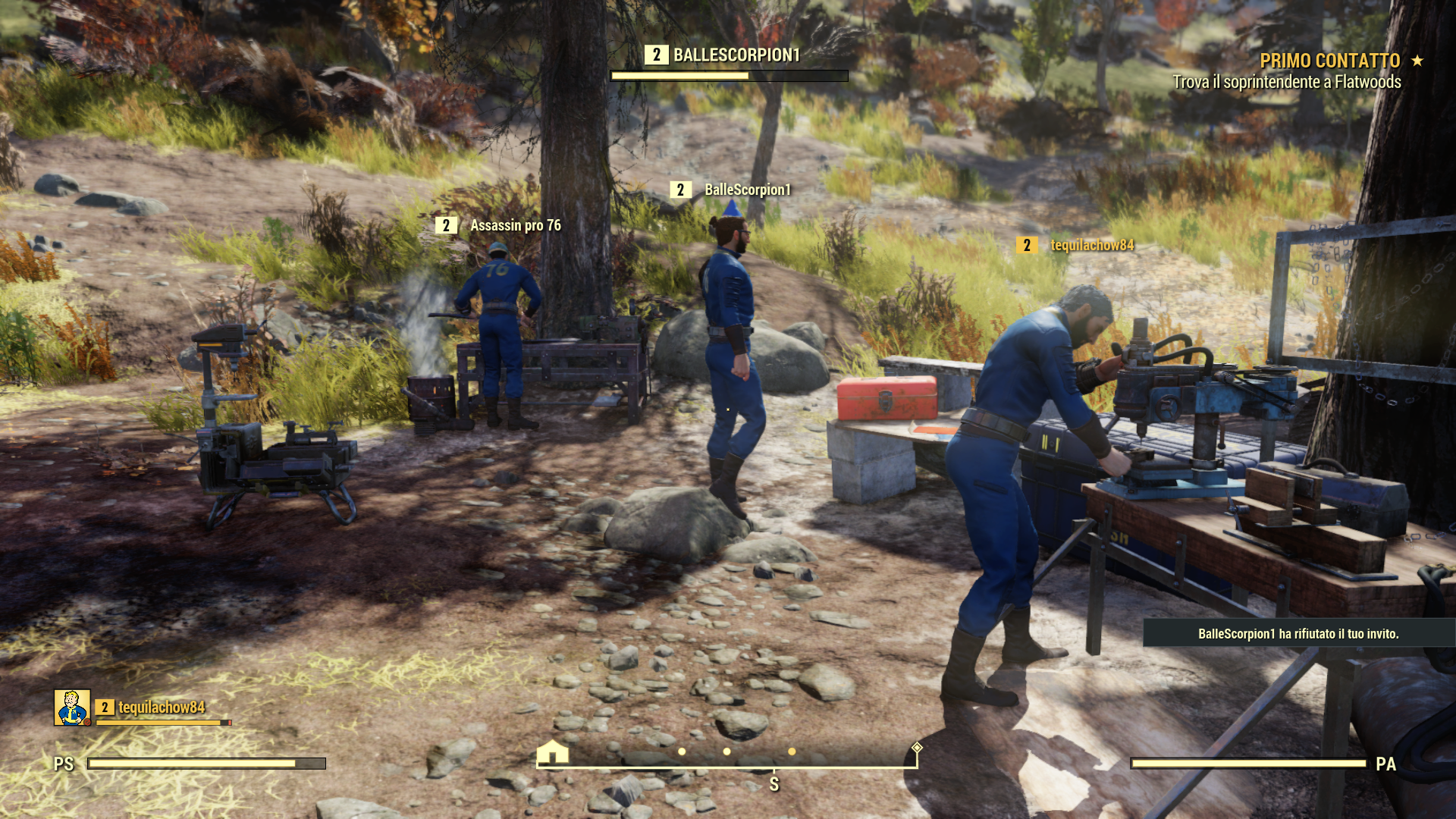 Fallout 76 vuole essere un titolo molto improntato sulla componente multiplayer: la grandissima area del West Virginia è condivisa online con altri utenti e il rapporto con essi non sarà di certo fondamentale per sopravvivere, ma velocizzerà considerevolmente il progresso nel gioco. Potremo reclutare o scambiare oggetti di ogni tipo, prendere parte a sfide a tempo o anche lottare assieme, assaltare forti nemici e tanto altro. Per comunicare abbiamo degli emote che fungono anche da messaggi rapidi, visibili a grandi distanze grazie a simpatiche animazioni del Vault Boy. Per quanto riguarda l’assegnazione dei punti S.P.E.C.I.A.L., ovvero Strength, Perception, Endurance, Charisma, Intelligence, Agility, e Luck, troviamo delle carte che verranno assegnate ad ogni caratteristica, che daranno al nostro sopravvissuto dei bonus di diverso tipo. Inoltre, non potremo scegliere di modellare le nostre specifiche come vogliamo, quando diamo punti ad un certo valore, quindi dovremo stare attenti nel decidere quale qualità va migliorata.