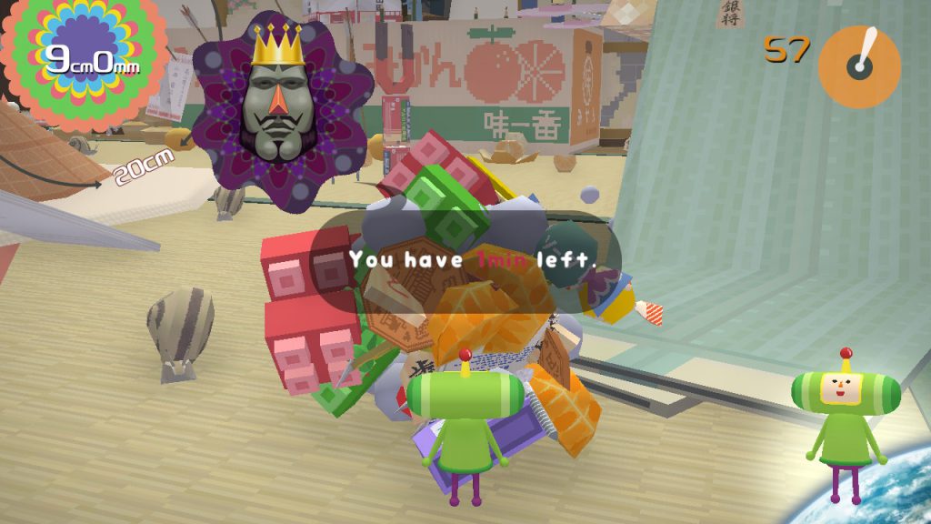 Le differenze di gameplay, se paragonate con il primo capitolo, sono pochissime. Le uniche variabili che il giocatore incontrerร , riguardano alcune missioni che il re del cosmo ci obbligherร  a seguire, come ad esempio creare un Katamari di una determinata dimensione (utilizzando, talvolta, alcuni oggetti richiesti presenti nella mappa di gioco) o tentare di fare il medesimo lavoro evitando perรฒ di raggruppare degli specifici elementi. Un ingredienteย  della produzione che certamente lascia senza parole, in maniera positiva, รจ il design che, nel corso di questi lunghi quattordici anni di attesa, non solo non sembra essere invecchiato male, ma riesce anche nell’impresa di unire con accuratezza la demenzialitร  della storia con il game design stesso. Se le mappe, a un primo approccio, possono sembrare dei meri luoghi colmi di oggetti sparsi a caso per le stanze, questa scelta effettuata dagli sviluppatori, in realtร , nasconde un profondo senso, dato che consentirร  al giocatore una libertร  sui movimenti e sul come far crescere la propria palla. Ma non tutti gli oggetti saranno in grado di essere inglobati nella nostra sfera: a seconda della dimensione da cui partiremo, il giocatore dovrร  fare attenzione agli ostacoli che si ritroverร  di fronte. Se la palla che possediamo รจ troppo piccola rispetto a ciรฒ che ci ritroveremo davanti, le possibilitร  di integrare l’oggetto nell’immediato saranno minime e anzi, il player potrebbe addirittura rischiare di perdere dei pezzi degli oggetti che precedentemente aveva inglobato. Viceversa, se la palla sarร  invece di dimensioni maggiori, il giocatore potrร  catturare quel determinato oggetto che precedentemente era una minaccia regalandogli non poche soddisfazioni.