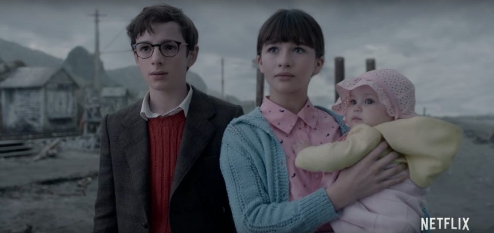 Tre intriganti fratelli sono nell’occhio del ciclone dei disastri: la maggiore, una geniale ragazza di nome Violet (Malina Weissman) con doti uniche nella meccanica, un brillante giovanotto di nome Klaus (Louis Hynes), in grado di recitare a memoria interi libri e una piccola ma precoce bambina di nome Sunny (Presley Smith), si ritrovano orfani dopo un tremendo incendio, che brucia la loro casa ed uccide i loro genitori. Da questo momento in poi, i tre saranno costretti a passare da tutore a tutore, uno più peculiare e caratteristico dell’altro, perennemente cacciati dal Conte Olaf (Neil Patrick Harris) desideroso, a tutti i costi, di mettere le mani sulla fortuna ereditata dai fratelli Baudelaire. L’opera è caratterizzata da un cupo umorismo, che condisce una storia fatta di società segrete, come quella dei VF (Volontari del Fuoco), e personaggi a dir poco indimenticabili. Sotto l’aspetto della basica struttura degli episodi e della narrazione interna ad essa, Netflix ha optato per un epico cambio di marcia, ma mai quanto, ad ora, azzeccata e funzionale. Le vicende narrate vengono raccontate dallo scrittore stesso Lemony Snicket che, interpretato in questo caso da Patrick Warburton, rivolgendosi direttamente allo spettatore (quindi rompendo la quarta parete), racconta tutti i fatti avvenuti ai tre fratelli. Proprio come il narratore all’interno di un romanzo. Un’altra scelta strutturale presa nella produzione del prodotto riguarda la suddivisione degli episodi stessi: ogni due episodi, nominati rispettivamente con il titolo di uno dei libri con il suffisso Parte 1 o Parte 2, racchiudono al loro interno tutte le vicende raccontate in un libro. In questo modo ognuno dei 13 libri è stato suddiviso in due episodi differenti e consequenziali. Nella prima stagione venivano narrati gli eventi avvenuti nei primi quattro libri per un totale di otto episodi, nella seconda invece troviamo dieci episodi, riportanti i fatti dal quinto al nono libro, e invece nella terza ed ultima stagione l’avventura si conclude con sette episodi, trasponendo gli ultimi quattro romanzi.