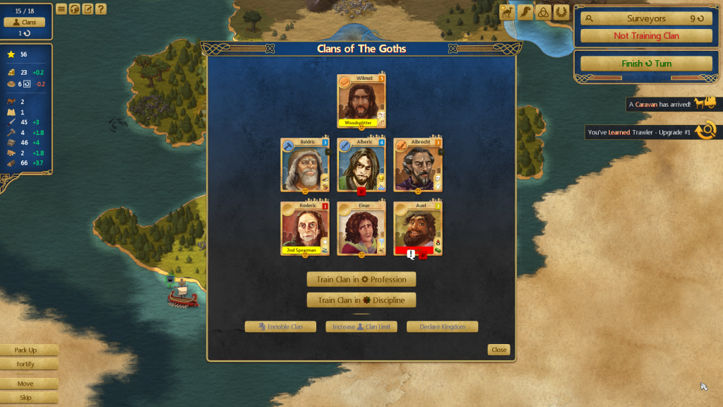 Possiamo dunque capire fin da subito, che saremo chiamati a gestire dei clan di barbari per cercare di conquistare l’Europa prima che lo faccia l’Impero Romano o gli altri popoli. Dovremo quindi riuscire a creare un sistema economico e bellico in grado di sostenere la nostra civiltร , andando a fiorire nelle arti o a coprirci di gloria tramite sanguinose battaglie a turni. Starร  sempre a noi decidere come i nostri sottoposti dovranno essere impiegati, rispettando i loro desideri e provando a sedare ogni rischio di conflitto interno. Ci aspettano dunque scelte, strategie, imprevisti e quant’altro in un mondo che non ci offrirร  alcuna pietร .