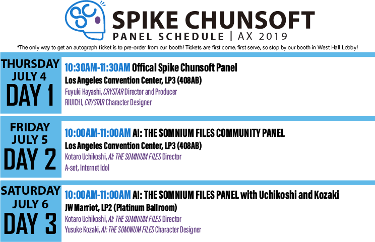 Quest’oggi, durante una livestream, la compagnia di publishing Spike Chunsoft ha annuito e infine confermato la presenza di tre annunci dedicati all’Anime Expo. La scaletta temporale comprendente le attività previste è stata successivamente pubblicata su Twitter, così da dare ai fan una idea di cosa aspettarsi ed eventualmente sintonizzarsi al momento opportuno. Per il primo giorno verranno rivelate tre diverse localizzazioni, mentre per gli gli altri eventi saranno relativi ai giochi di Mages come Stein’s Gate o Chaos Child. Le date previste sono quelle della fiera, dunque dal quattro al sei luglio 2019.