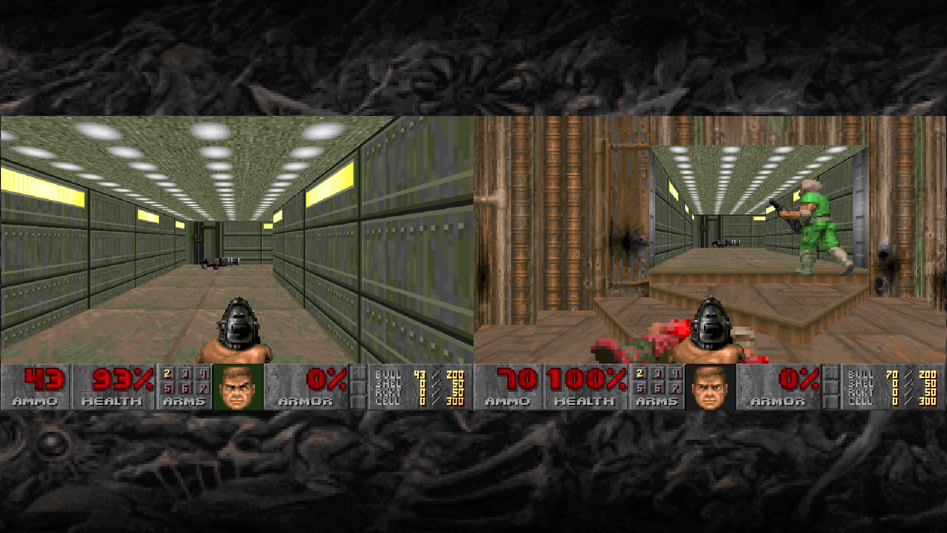 DOOM II, di fatti, non era poi cosรฌ diverso dal primo capitolo, dato che condivide con esso il comparto sonoro, grafico e il gameplay stesso. Tuttavia, il secondo titolo della serie introduceva tre principali novitร : le prime due sono dei nemici, l’heavy weapon dude e l’iconico Revenant, e una doppietta che puรฒ sparare due cartucce contemporaneamente. Ai tempi, DOOM II aggiungeva anche il multiplayer in LAN, novitร  assoluta per i PC dell’epoca, che perรฒ รจ presente oggi sia nel porting del primo capitolo che in questo. Per lo stesso motivo motivo, sono fin troppe poche le differenze tra i due titoli, che si somigliano in quasi ogni aspetto. Tuttavia, il secondo DOOM resta indiscutibilmente divertente da giocare sia da soli che con gli amici, e mantiene ancora alto il fattore nostalgia. Complici alcuni easter egg famosissimi, tra cui la testa di John Romero stesso, e l’introduzione del boss Icon of Sin, che appare nel reboot del 2016 e che avrร  un ruolo anche nell’attesissimo DOOM Eternal. Ancora una volta, il comparto multiplayer รจ apprezzatissimo, sia in modalitร  deathmatch che in cooperativa. Nel classico tutti-contro-tutti gli utenti saranno chiamati a scegliere una delle tantissime mappe a disposizione per spararsi a vicenda. Collaborando, invece, potranno giocare i livelli della modalitร  storia. Ciรฒ che รจ interessante, tuttavia, รจ la possibilitร  di scegliere lo scenario tra i trenta disponibili, anche se non ci siamo arrivati effettivamente durante la campagna. Inutile, perรฒ, nascondere che ci saremmo aspettati qualcosa in piรน dato che, ripetiamo, c’รจ davvero poco e nulla in piรน rispetto il prequel, cosa che rende questo secondo capitolo come il meno rilevante dell’intera DOOM Trilogy, anche rispetto a DOOM 3.