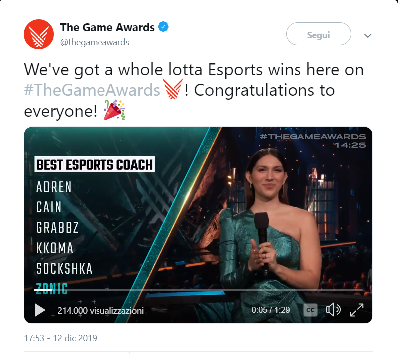 Uno dei primi premi annunciati durante il The Game Awards 2019 è stato “Best Esports Coach” ed il vincitore di questo anno è l’ex giocatore professionista danese di Counter-Strike 1.6 (2003), titolo sviluppato dalla Valve Corporation, ovvero, Danny “zonic” Sørensen. In passato Il nostro protagonista ha avuto grandissimi successi con diversi team nella sua nazione, tant’è che in totale sono riusciti a vincere ben 110,000 dollari in denaro come ricompensa. Il vincente è stato anche uno dei membri fondanti di mTw, una delle squadre dominanti dello sparatutto in prima persona multigiocatore sopraccitato. Dopo la transizione dei vari gruppi verso Counter-Strike: Global Offensive (2012) il sottoscritto decide di abbandonare la scena. Arriviamo così nel 2015 in cui comincia la sua carriera da coach, entra in Dignitas per poi tornare a giocare, ma senza successo, per mTw. Infine si aggiunge in Questionmark come allenatore per arrivare nel gennaio del 2016 in Astralis. Di seguito potrete consultare la lista con gli altri canditati: