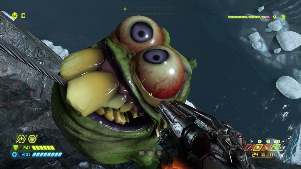 Proprio lui, l’orrendo pesce palla verde dai denti sporgenti, nemico di Commander Keen. Per qualche strana ragione, è uno di quegli Easter Egg ricorrenti nel mondo dei videogames. Potete trovarlo anche in DOOM Eternal, nel livello della Cultist Base, alla sua massima definizione. Grottesco, ma appagante per gli estimatori della cultura pop.