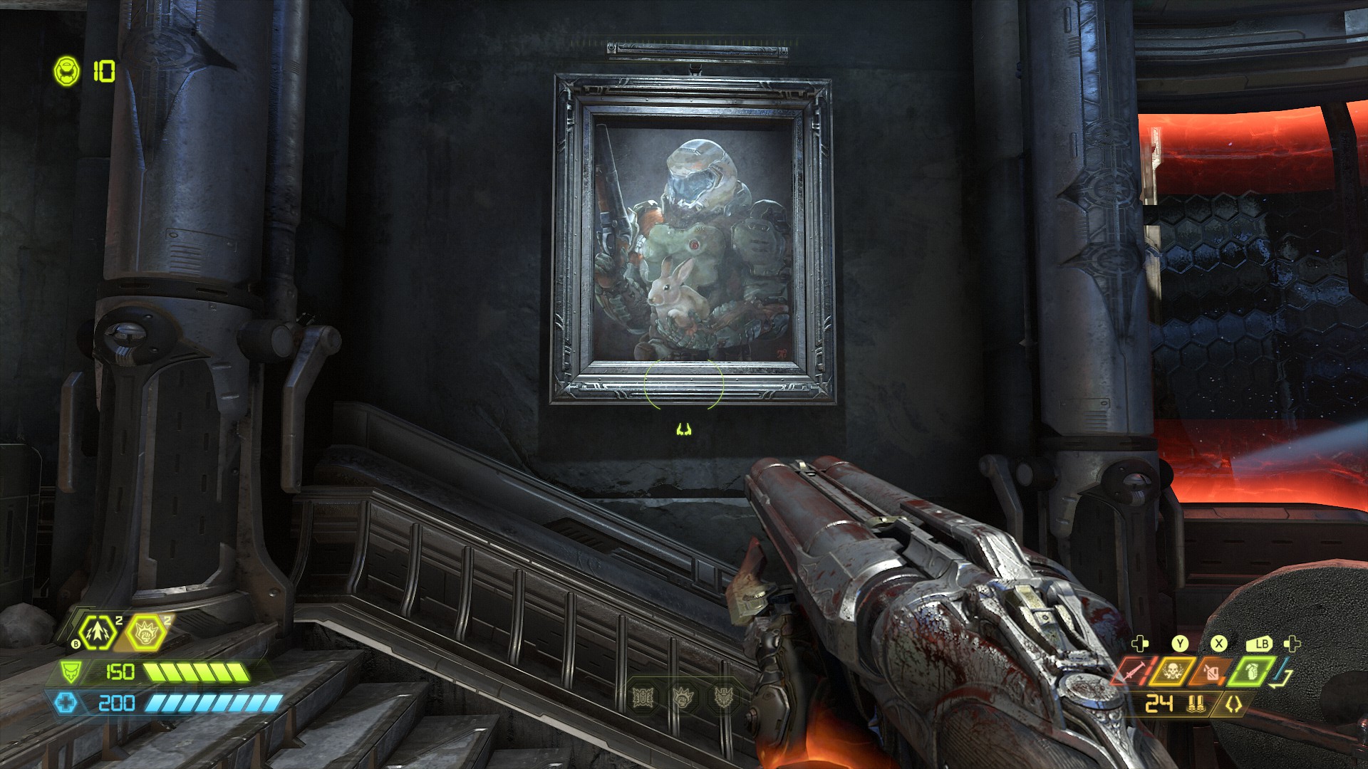 Il cuore del Doom Slayer non è di ghiaccio, almeno quando sente quel nome. Come i fan di lunga data sapranno, il punto debole dello space marine più temuto dai demoni non è una donna, bensì la sua adorata coniglietta. Ci sono diversi riferimenti a Daisy sparsi nella Fortezza del Destino, come un dolcissimo dipinto che la ritrae in braccio al suo padrone oppure una gabbietta vuota. Inoltre, è possibile avvistare la coniglietta stessa all’interno del gioco, in particolare all’interno del secondo livello.