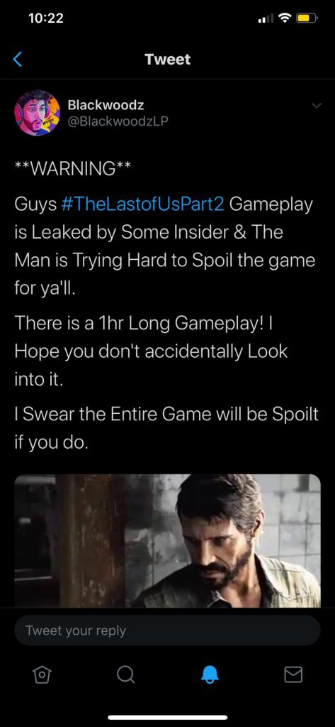 The Last of Us Part II non riesce proprio a trovare pace. Nella giornata di ieri è stato eliminato il trailer ufficiale, uscito durante lo State of Play di settembre 2019. A causa del Coronavirus il titolo è stato rimandato a data da definire e sia Sony che Naughty Dog sembrano essere in alto mare nel prendere una decisione. Ma non è tutto: numerosi spoiler minacciano l’opera. Infatti, il web è pieno di presunte notizie che, secondo alcuni insider, starebbero per essere rilasciate da un momento all’altro sotto forma di un gameplay da 1 ora. Che siano leak non ufficiali o materiale di gioco autentico, noi ci teniamo a mettervi sull’attenti, pena dolorosi spoiler.