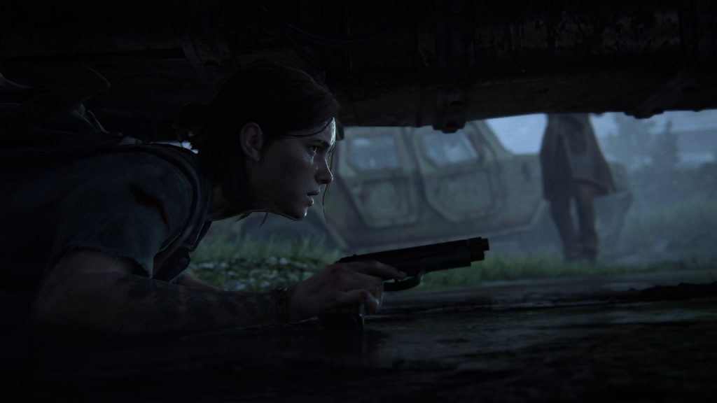 Con un miglioramento delle basi gettate da The Last of Us e da Joel, Ellie affina le tecniche e ne aggiunge altre, personalizzando l’esperienza in base a chi stiamo controllando. Se il nostro vecchio protagonista aveva difficoltà nel raggiungere le alture e la verticalità del primo titolo era drasticamente ridotta, con Ellie non avremo problemi nell’arrampicarci su camion o tetti più disparati. Ma l’esplorazione non è l’unica ad essere stata aggiornata, con aree molto più ampie e complesse, anche le fasi stealth giovano di una novità: potremo strisciare. Sfruttando la vegetazione ormai cresciuta senza alcun ostacolo, dopo ben 25 anni dall’outbreak del 26 ottobre, o anche le auto più alte del normale, avremo la possibilità di mantenerci bassi e silenziosi e di non destare attenzioni indesiderate. Ma attenti, questo non significa che sarete fuori pericolo. I vostri avversari non sono sciocchi e controlleranno anche sotto i veicoli. Un’altra aggiunta di cui avevano parlato gli sviluppatori in alcune interviste è il battito cardiaco. Questo piccolo particolare servirà ad aumentare la tensione nelle sequenze di gameplay più importanti e pesanti. Attenzione anche a quando venite feriti: le frecce degli archi si incastreranno nella vostra spalla e dovrete estrarle voi stessi per curarvi.