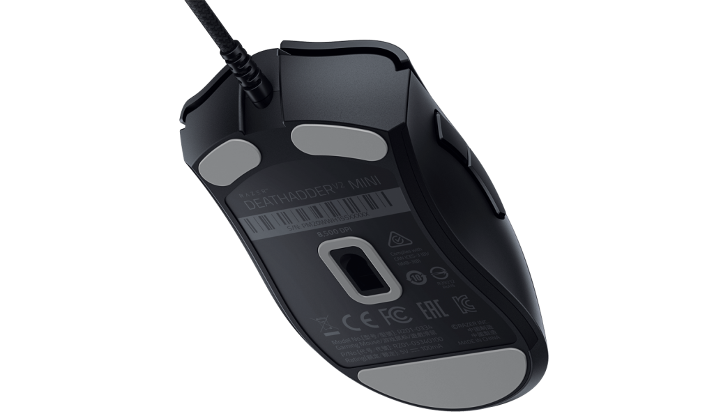 Come la stessa nomenclatura “Mini” ci fa intendere, il target primario per questa versione è chiaramente diretto a tutti i giocatori che hanno delle mani relativamente piccole. Ciò non vuol dire che diversi tipi di utenti non possano trovarlo confortevole. La scelta è, appunto, dettata ampiamente dalla presa che si ha: nel caso in cui la vostra taglia sia S, potrete utilizzare un’impugnatura palm o claw, mentre per gli M, è possibile applicare un posizionamento fingertip o claw. Se avete una grandezza di tipo L, sfortunatamente sconsigliamo l’acquisto perché quasi sicuramente troverete il DeathAdder V2 Mini esiguo. Il cavo utilizzato è il Razer Speedflex Cable, il quale si rivela ottimo, dato che è assolutamente un’opzione migliore dei classici fili in gomma e, grazie alla sua moderata durezza, non causerà alcun fastidio anche nelle fasi di gioco più concitate. I piedini, invece, sono composti al 100% da PTFE, non a caso sono in grado di assicurare prestazioni all’avanguardia rispetto alla norma. Sono anche piuttosto spessi, proprio per questo risulterà difficile avere un feeling spiacevole.