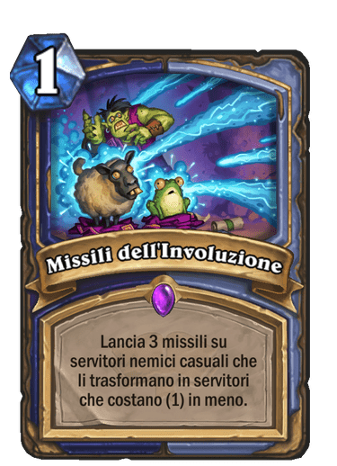 Gli specialisti delle magie in Hearthstone sono, senza dubbio, lo sciamano e il mago. Solo uno dei due, però, si è ad oggi cimentato con il concetto di evoluzione con perizia e dedizione costante: lo sciamano. Ma grazie alle carte bi-classe, perché sì, anche Missili dell’involuzione lo è, dal 6 agosto, data di rilascio di Accademia di Scholomance, il mago (e anche lo sciamano) sarà dotato di una carta a costo 1 che trasforma tre servitori avversari casuali in 3 servitori che costano 1 mana in meno di quelli di partenza. Una carta del genere in un meta come quello che sta per delinearsi ad agosto, con servitori dotati di rantoli di morte, enormi muri dietro i quali sentirci al sicuro, o comunque carte con strategie che potrebbe essere utile avere sul campo così come Blizzard le ha fatte, non può costare 1 e non può essere giocata da mago e sciamano insieme. Solo Chtun sa se in futuro sarà davvero tanto efficace come sembra oggi. Ma se tutto va per il verso giusto, nasceranno Tempo Sciamani e Tempo Mage da far tremare i muri.
