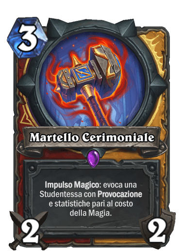 Martello Cerimoniale è un’altra carta bi-classe che entra in questa Early Top 5 di Hearthstone prima di stabilirsi vita natural durante in tutti i mazzi Guerriero e Paladino del globo. L’impulso magico che possiede permette di evocare un servitore con provocazione con statistiche pari al costo della magia che abbiamo castato. Il martello è un equip a costo 3 con stat 2/2. Solo io penso già alle combo in late game che può provocare con le magie folli del Guerriero, o alle giocate Early che ne possono derivare nel caso del Paladino? Non credo.