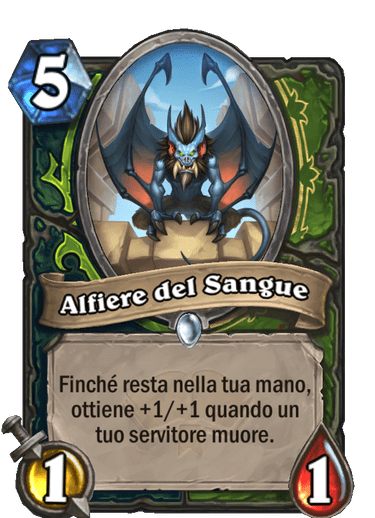 Ultimo, ma non ultimo, Alfiere del Sangue. Un servitore che a costo 5 parte da 1 / 1 e si potenzia con +1 / +1 nella mano ogni volta che muore un altro nostro servitore. Il vampiresco alfiere può così facilmente raggiungere a turno 5 valori di offesa e difesa altisonanti come 10 / 10, o anche più, costringendo l’avversario a fronteggiarlo sprecando preziosi removal e silence, o rimanendo sul terreno con effetti devastanti per i punti vita nemici. Volendo, un’ultima carta tech dell’accademia può risultare valida per il mazzo, in sostituzione, certo, di un’altra tech presente attualmente nel deck (e che di solito in realtà è più utile). Escludendo una Melma delle Paludi, e privandosi quindi di un removal per le armi nemiche, si può inserire nel deck Scopa Animata, una 1 / 1 a costo uno con assalto che regala Assalto anche agli altri nostri servitori. In combo con Nethrandamus può diventare pericolosissima, certo. Ma anche insieme a Teron Malacarne non è male, considerando il numero di Silence che girano, e che non consentono a Teron di sfruttare appieno il suo effetto (Grido di battaglia: distruggi tutte le tue creature. Rantolo di morte: rievocale con +1 / +1). Con Scopa Animata Teron può invece entrare e uscire rapidamente dal campo, facendo anche 3 danni a un servitore nemico.