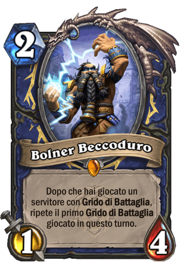 Lo Sciamano sembra essere tornato in gioco più forte che mai, con diversi mazzi che dominano la ladder già oggi, prima di Uniti a Roccavento. Ma le nuove carte che sta per ricevere non faranno altro che consolidare lo strapotere di una classe storica di Hearthstone, che per qualche season è stata dimenticata e negletta fin troppo. Bolner Beccoduro, fra le altre carte, permette di giocare in modo strategico i nostri gridi di battaglia, duplicando il primo grido di battaglia giocato nel turno in corso, ogni volta che ne attiviamo un altro. Straripante, specialmente con tutti i gridi di battaglia importanti delle piccola carte (elementali soprattutto) dello Sciamano. Ciononostante, trovo che pro e contro della carta siano estremamente bilanciati. Fuori dal mondo Wild, non dovrebbe essere a rischio Nerf.