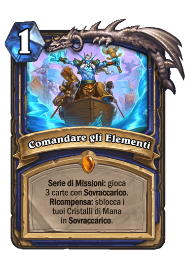 Ultima ma non ultima, una delle cinque nuove Serie di Missioni di Hearthstone. Una serie di carte dalla meccanica nota, ma rinnovata, idealmente per bilanciare il power level e velocizzare il gioco dei mazzi missioni. Effettivamente, però, alcune serie di missioni sono talmente forti anche prima di raggiungere lo stadio finale, che temiamo già da ora. Comandare gli Elementi dello Sciamano è probabilmente la migliore, sia prima che dopo il completamento. Per arrivare ad avere in mano Invocatempeste Bru’kan, che raddoppierà per sempre il lancio delle nostre magie, dobbiamo passare attraverso una serie di tre missioni, e giocare in tutto 9 carte con Sovraccarico. Il primo stadio però, per dire, sblocca i cristalli in sovraccarico accumulati, consentendo di non subirne il drawback. Il secondo, invece, evoca un piccolo elementale 3/3. Ma… dico… non era meglio invertire le due ricompense? No? Va bene, scusate.