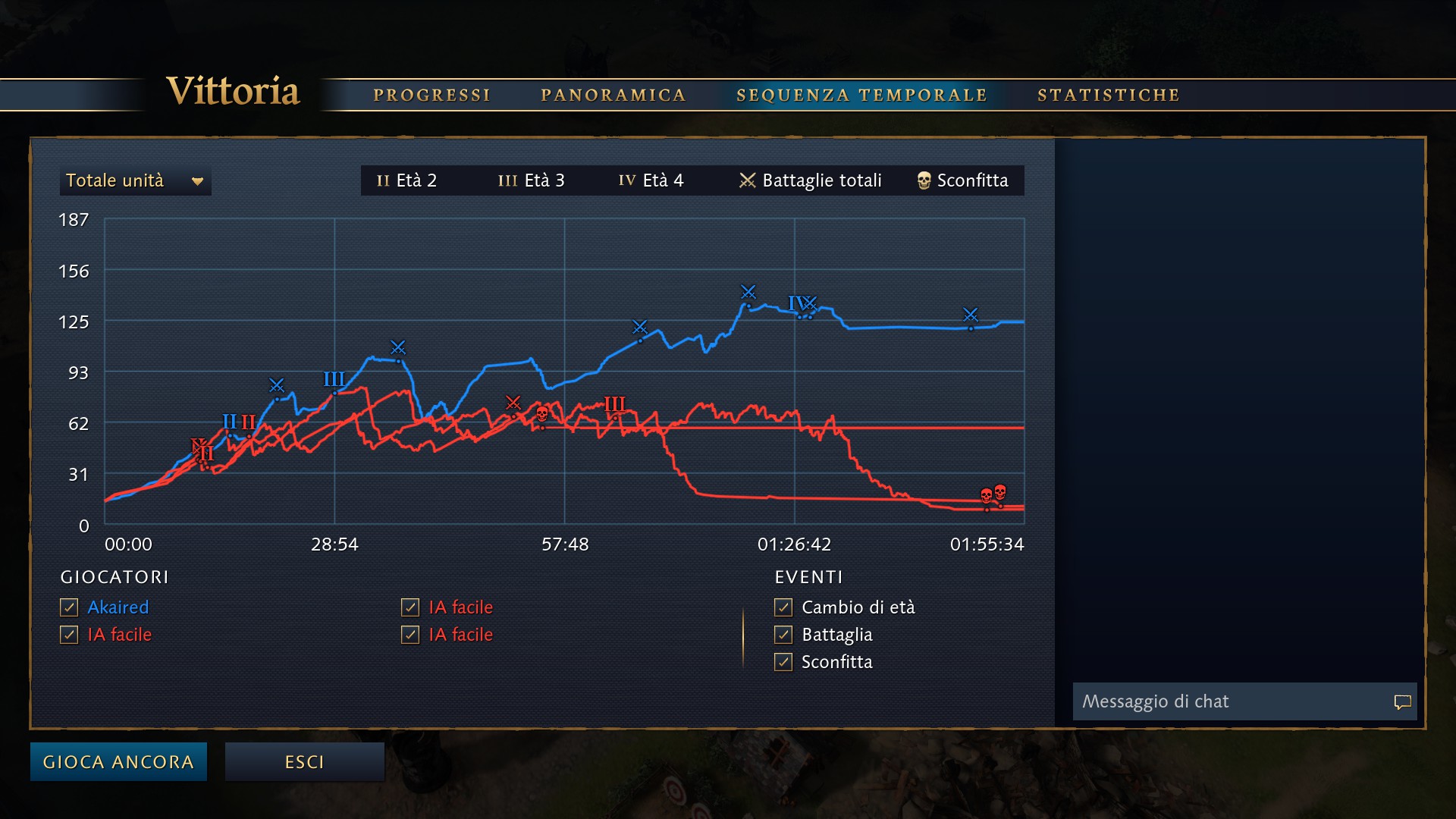 Uno degli elementi più importanti per ogni giocatore impegnato di Age of Empires è sempre stato quello di rivedere la propria performance e le proprie mosse in relazione alla conclusione e all’esito di ogni partita. In ultima analisi, il modo migliore per diventare strateghi più esperti è quello di apprendere cosa è andato storto e cosa bene in ogni battaglia, “perdere è divertente” come insegna Dwarf Fortress, e ovviamente, pur non essendo vero nei contesti più competitivi, sarà sempre quantomeno formativo in Age of Empires IV. In questo senso, anche tutta la parte di interfaccia e schermate dedicate ai progressi, alla panoramica, alla sequenza temporale e alle statistiche di gioco è stata rinnovata. Leggere il grafico alla fine di ogni scontro (lungo o corto) ha sempre un valore speciale per i fruitori di questo franchise, e pur essendo un dettaglio minore, fa piacere notare come lo staff degli sviluppatori abbia aggiornato anche questo frangente dell’esperienza.