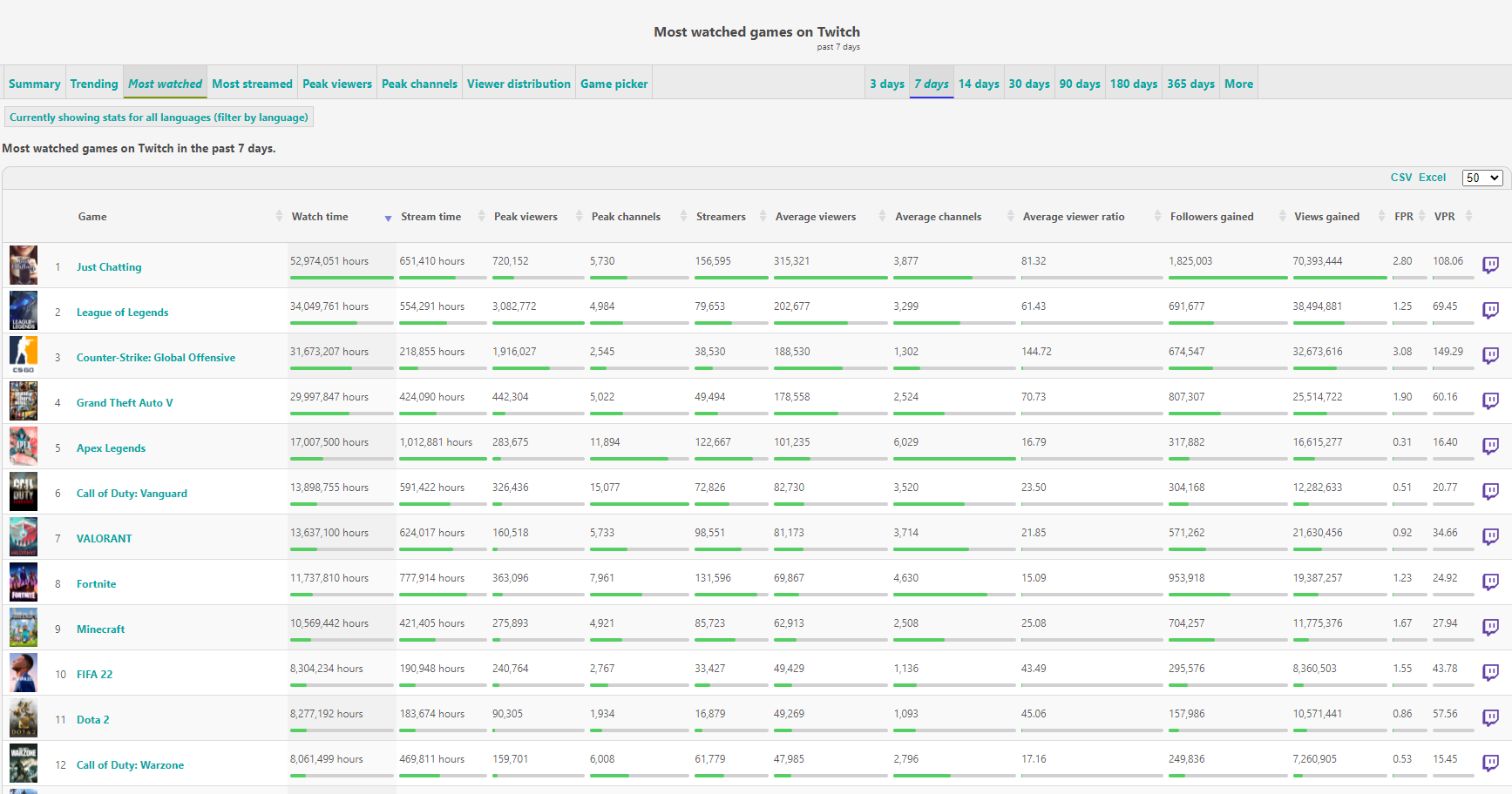 Grazie ai dati ottenuti da SullyGnome, Apex Legends ha totalizzato un tempo di visualizzazione totale di 17.007.500 ore, con un picco di visualizzazioni di 283.675 negli ultimi sette giorni. Questo lo colloca sopra sia Warzone che Fortnite, che si trovano rispettivamente al sesto e all’ottavo posto.