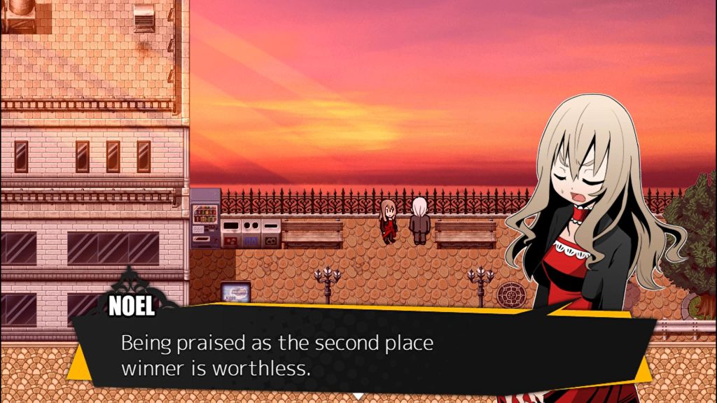 Questo è l’inizio di Noel The Mortal Fate, l’inizio che porterà questa ragazza percorrere il sentiero della vendetta. Il gioco è incentrato sulla storia e sull’evoluzione dei vari personaggi principali, dove il gameplay passa in secondo piano. Essendo un titolo costruito su RPG Maker ha diverse limitazioni, ma non mancano divertenti meccaniche durante l’avventura. Nonostante i mezzi disponibili Noel the Mortal fate ha un buon comparto grafico. Questo è più evidente durante i dialoghi dove vediamo i personaggi disegnati con un stile grafico molto piacevole.