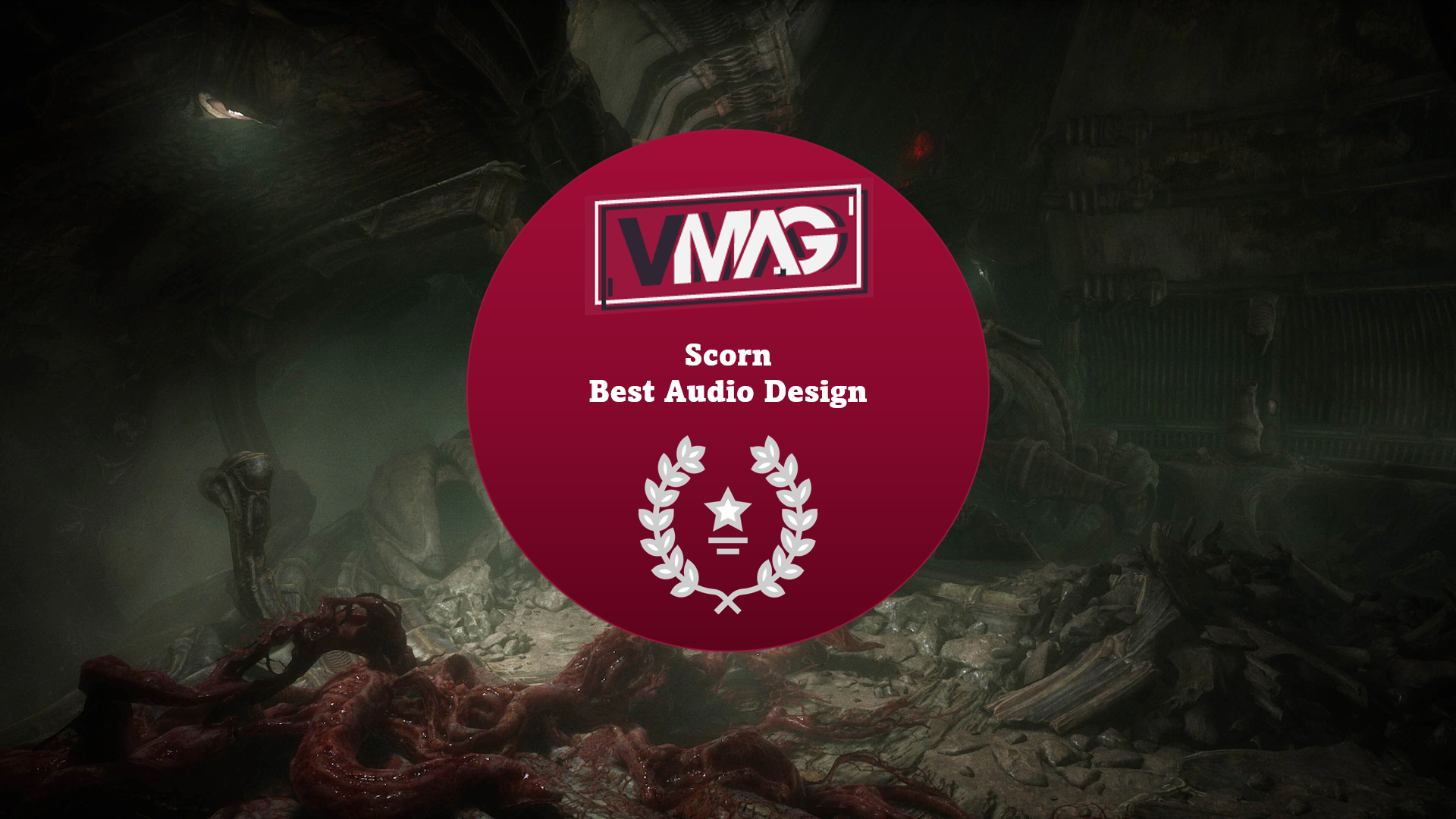 Il mondo “organicpunk” di Scorn ha dato la possibilità al team di Ebb Software di sperimentare molto con il sound design andando a creare suoni innovativi e che amplificavano a dismisura l’immersione del giocatore. Il tutto va anche a fare riferimento ai vecchi film horror, i quali puntavano molto sulla realizzazione di suoni disgustosi e/o spaventosi.