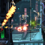 Ad aggiungere un ulteriore livello di profondità ci pensano i 7 personaggi selezionabili. Alcuni di loro sono semplici reskin utili per differenziarsi l’uno dall’altro all’interno della mattanza in couch co-op locale fino a 4 giocatori; in altri casi, come per esempio le due nuove co-protagoniste Lucia e Ariana, mettono in mostra nuovi modi per approcciarsi al gioco, con tanto di armi e opzioni di movimento uniche. Per esempio, Lucia è in grado di sparare un rampino in grado di agganciarsi a speciali impalcature difficilmente raggiungibili con le normali abilità di salto e doppio salto, o ancora meglio Ariana è in grado di effettuare delle scivolate al posto delle semplici schivate, permettendole di evitare determinati proiettili con più facilità e di essere più adatta a momenti di platforming a ostacoli più serrati. Questo va ad aggiungere ulteriori variazioni ad una formula di gameplay già ben consolidata e che porterà gli appassionati ad ammassare ore su ore, anche solo per il puro gusto di dire “dai, un’altra partita”. Ovvio, non tutto è oro quel che luccica e durante le nostre partite abbiamo riscontrato momenti in cui il gioco non ha mostrato una particolare perfezione tecnica, con personaggi che ogni tanto sparivano dallo schermo o che non registravano determinati input, ma parliamo comunque di piccolissimi nei risolvibili con qualche patch.