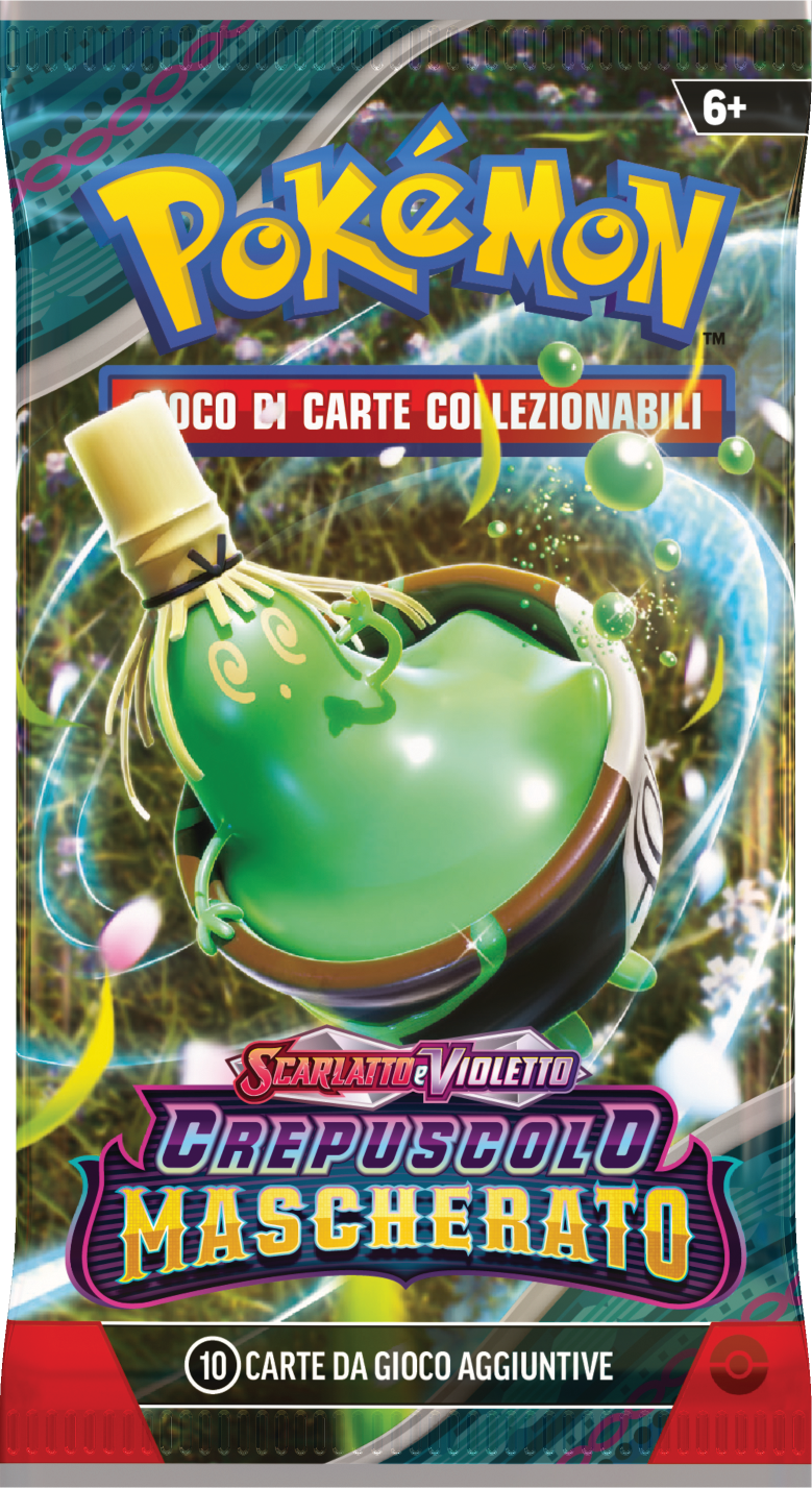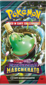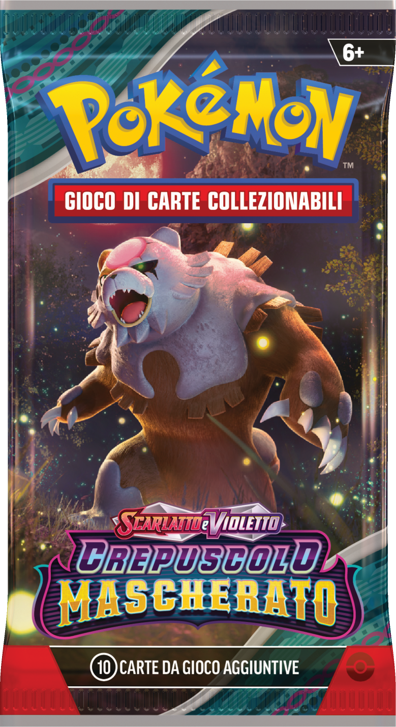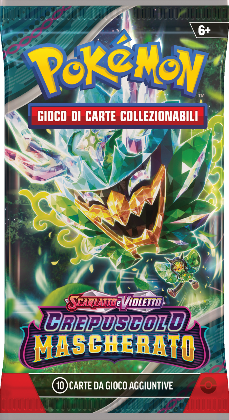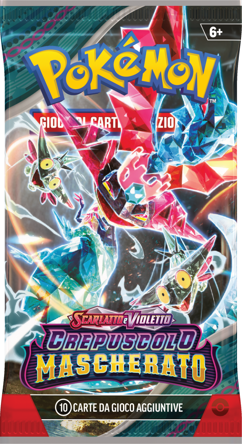 Le carte dell’espansione Scarlatto e Violetto – Crepuscolo Mascherato del Gioco di Carte Collezionabili Pokémon saranno disponibili nelle buste di espansione, nei set Allenatore Fuoriclasse e nelle collezioni speciali presso i rivenditori autorizzati in tutto il mondo.