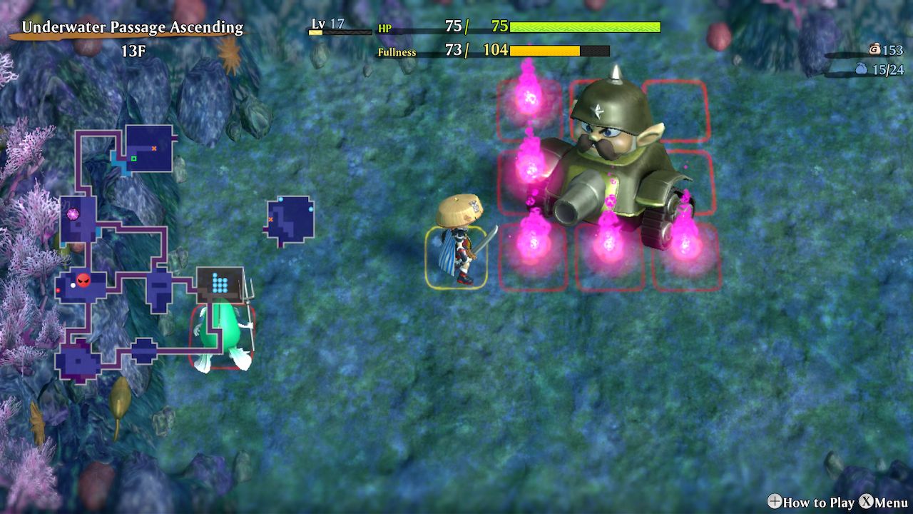 Più che di una evoluzione dei vecchi capitoli sarebbe opportuno parlare di rielaborazione con nuovi elementi e bilanciamenti precisi di gameplay. Le meccaniche sono essenzialmente le solite: Shiren deve esplorare decine di labirintiche mappe cercando di arrivare vivo all’uscita di ognuna di queste e, si spera, sempre meglio equipaggiato, cercando di scoprire i misteri dell’isola e sopravvivere per raccontarli. In caso dovesse cadere in battaglia (o per i morsi della fame) si ritroverà a dover ricominciare d’accapo, perdendo tutto quel che reca con sé, che siano oggetti, equipaggiamenti, armi… l’esplorazione avviene in tempo reale, ma ad ogni mossa del protagonista ne corrispondono altrettante di mostri e creature che popolano i livelli… e che non esiteranno ad attaccare l’intruso. Non solo ad ogni azione corrisponde una reazione, ma ogni azione ha una conseguenza e ogni passo falso potrebbe essere l’ultimo della run in questione. Il sistema di combattimento e, in generale, le azioni sono alquanto basilari, ma proprio nella sua estrema schematicità il gioco trova la sua ragion d’essere.