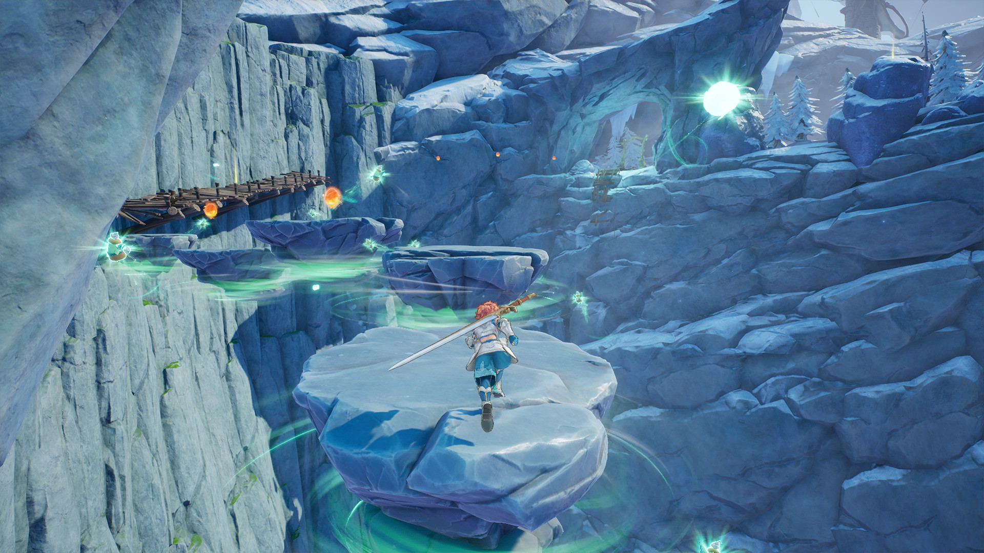 Parlando invece della parte più Action di Visions of Mana, quest’ultima è stata esplorata durante una seconda demo ambientata nel Monte Gala, una ripida scalata verso la cima di una montagna innevata e una boss fight contro un mostro gigantesco. Si è trattata comunque di una sessione posizionata ovviamente verso le battute iniziali del gioco, ma in questa occasione ci è stato permesso di esplorare le possibilità offerte dal menu dedicato alla gestione del party. Tra le varie opzioni disponibili, la meccanica del cambio di classe è stata più volte incoraggiata e suggerita durante la sessione. Un po’ come le Dressphere di Final Fantasy X-2, selezionando una classe specifica il personaggio cambierà il suo vestiario e le mosse in grado di effettuare durante i combattimenti. Per esempio, durante la sessione abbiamo potuto ammirare Val nel ruolo di cavaliere dotato di spadone spaccateste e in quello di lanciere dotato di scudo e pronto a caricare qualunque cosa si muova verso di noi. Ma non solo, la scelta delle classi influenza anche l’Elemental Vessel associato ai membri del party. Una volta trovato il miglior bilanciamento tra classi ed elementi si è liberi di esplorare le proprie opzioni offensive, all’interno di un combat-system semplice ma potenzialmente vario.
