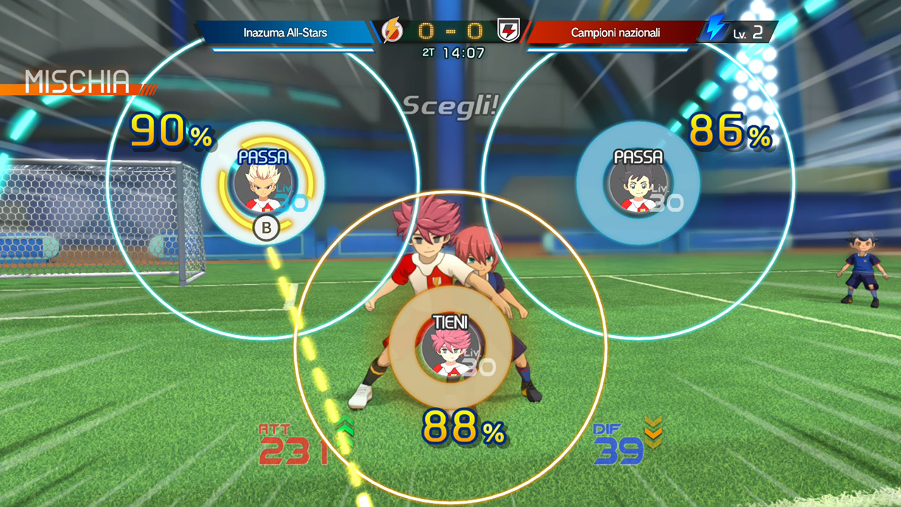 Premendo il tasto X del controller una volta raggiunta l’area di rigore, il giocatore entrerà nella “Zona”: un momento di gameplay in bullet time in cui l’attacco sceglie se concludere a rete oppure passare la palla e la difesa si posiziona per bloccare la conclusione. Prendendo spunto da quanto visto in Captain Tsubasa: Rise of New Champions qualche anno fa, il funzionamento delle difese del portiere è gestito da una barra di salute che, dopo ogni tiro parato, scenderà drasticamente fino a quando non sarà abbastanza debole da poterlo superare. È comunque possibile aumentare temporaneamente la propria resistenza utilizzando una tecnica speciale, ma quest’ultima – come per qualsiasi altra tecnica speciale – necessiterà di una spesa in Tension Point per essere utilizzata. L’idea quindi nel loop di gioco di Inazuma Eleven Victory Road è quella di discostarsi dal mood da “ho le mosse più forti e le statistiche alte, quindi ho vinto” dei giochi precedenti, introducendo al suo posto una guerra d’attrito in cui la strategia e la combinazione di abilità attive e passive decideranno le sorti della partita, riportando in auge anche la meccanica dei “tiri a catena”, combo tra mosse speciali in grado di infliggere ulteriori danni al portiere e portare la squadra sempre più vicina al gol.