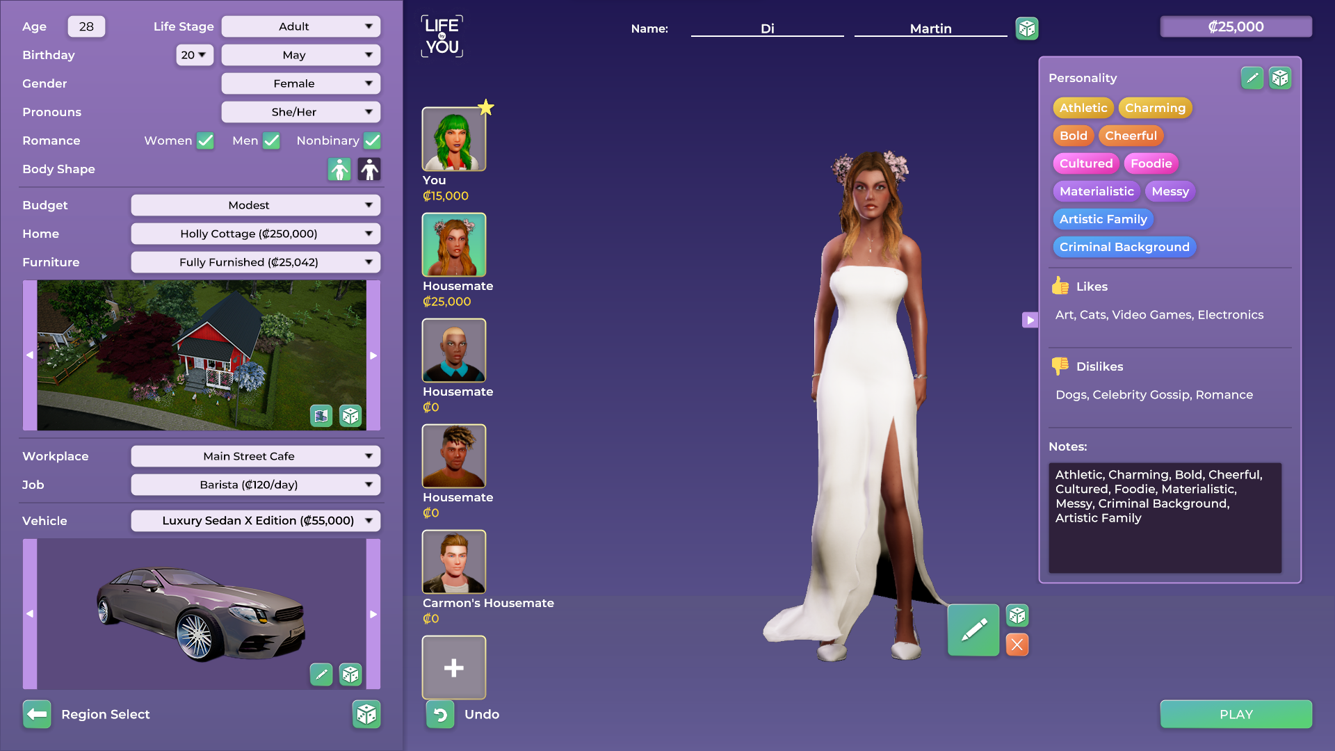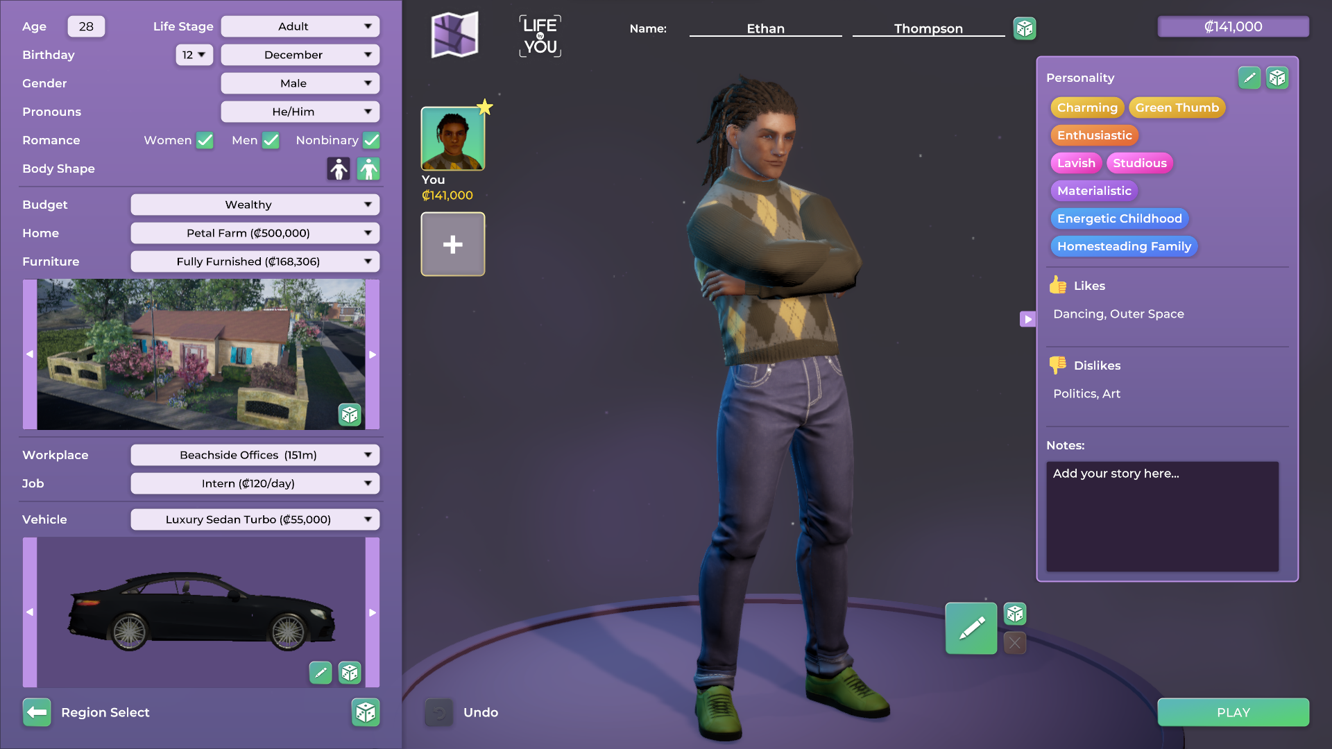 Costruisci e personalizza esseri umani e ambienti: Progetta la casa dei tuoi sogni da zero o ristruttura edifici esistenti. Personalizza il tuo personaggio umano con uno strumento di creazione dei personaggi ricco, che include anche una personalità profonda e tratti caratteriali.