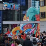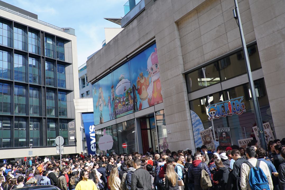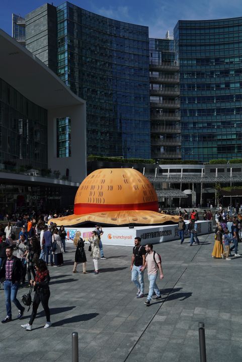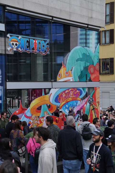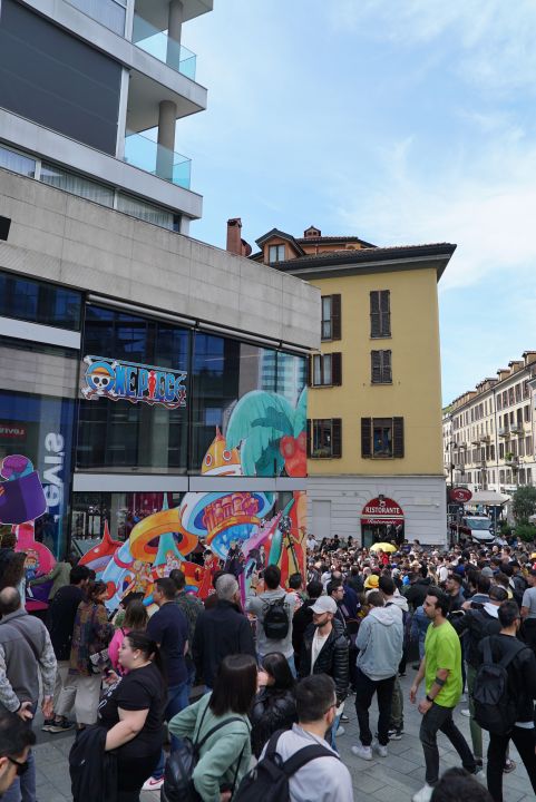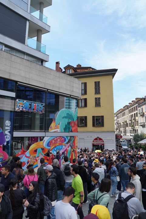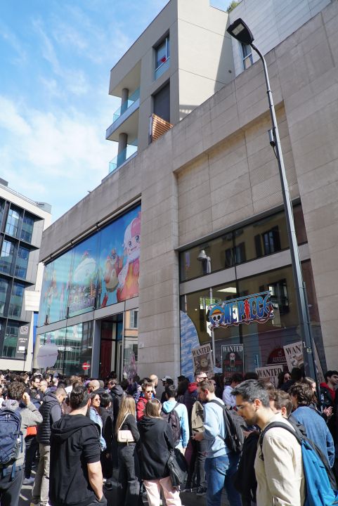 La festa per il compleanno di One Piece, a Milano, è cominciata con lo svelamento del gonfiabile gigante e l'apertura del pop-up shop.