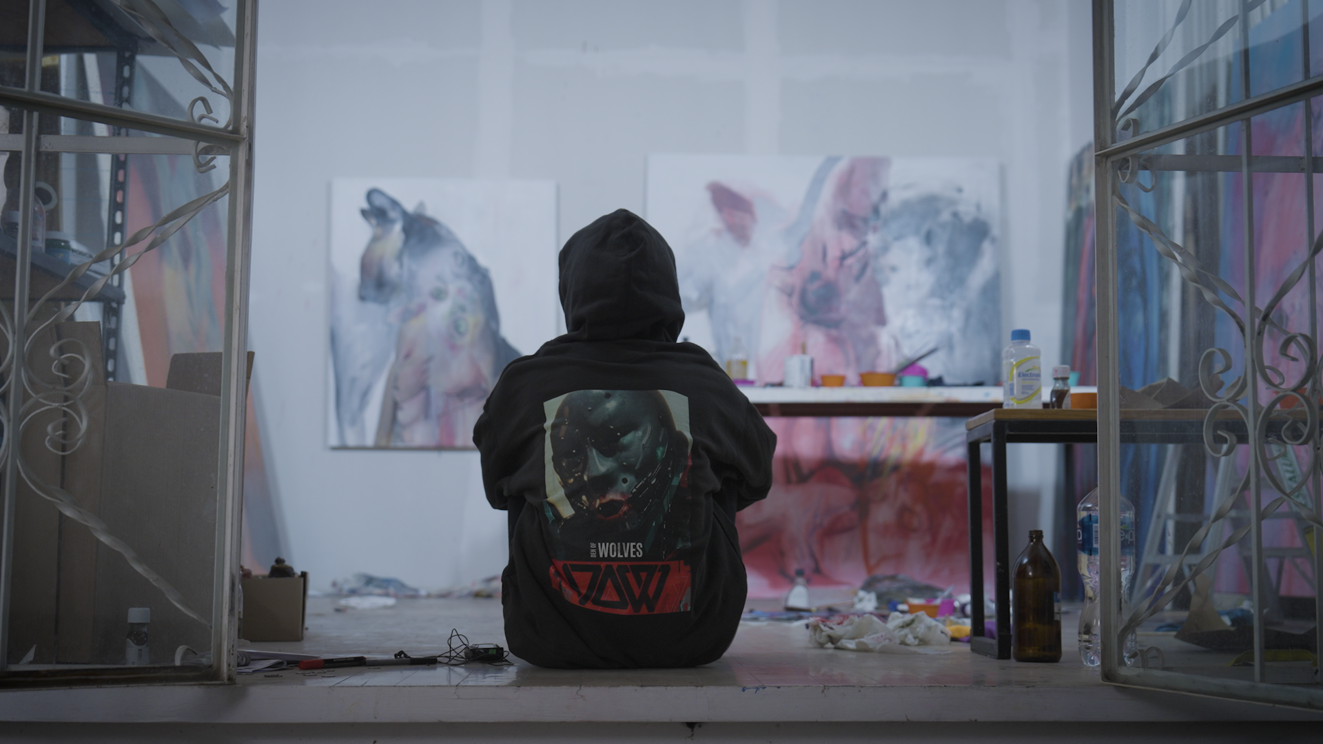 Una collaborazione che esplora la disparitร  tra pittura fisica e digitale attraverso la lente del coinvolgimento sensoriale… Il processo digitale naviga in un regno di pixel e schermi, allontanando l’artista dall’interazione tattile con l’opera d’arte, ma allo stesso tempo conferendole una vita propria mentre il gioco diventa realtร .