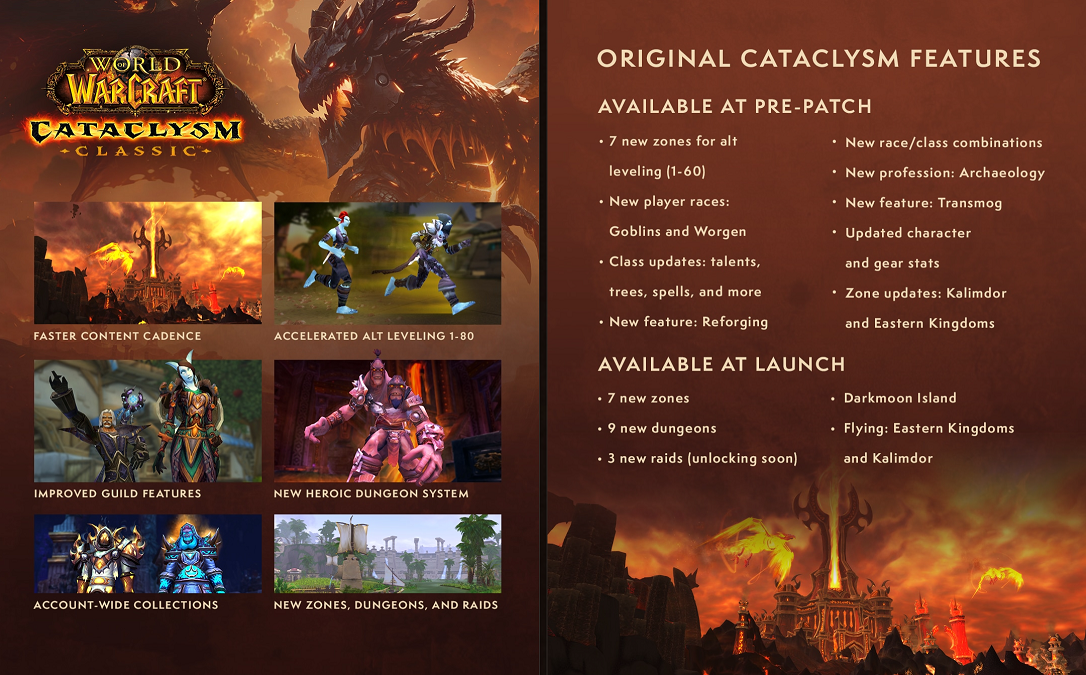 Di seguito le novità che i giocatori e le giocatrici troveranno in Cataclysm Classic: