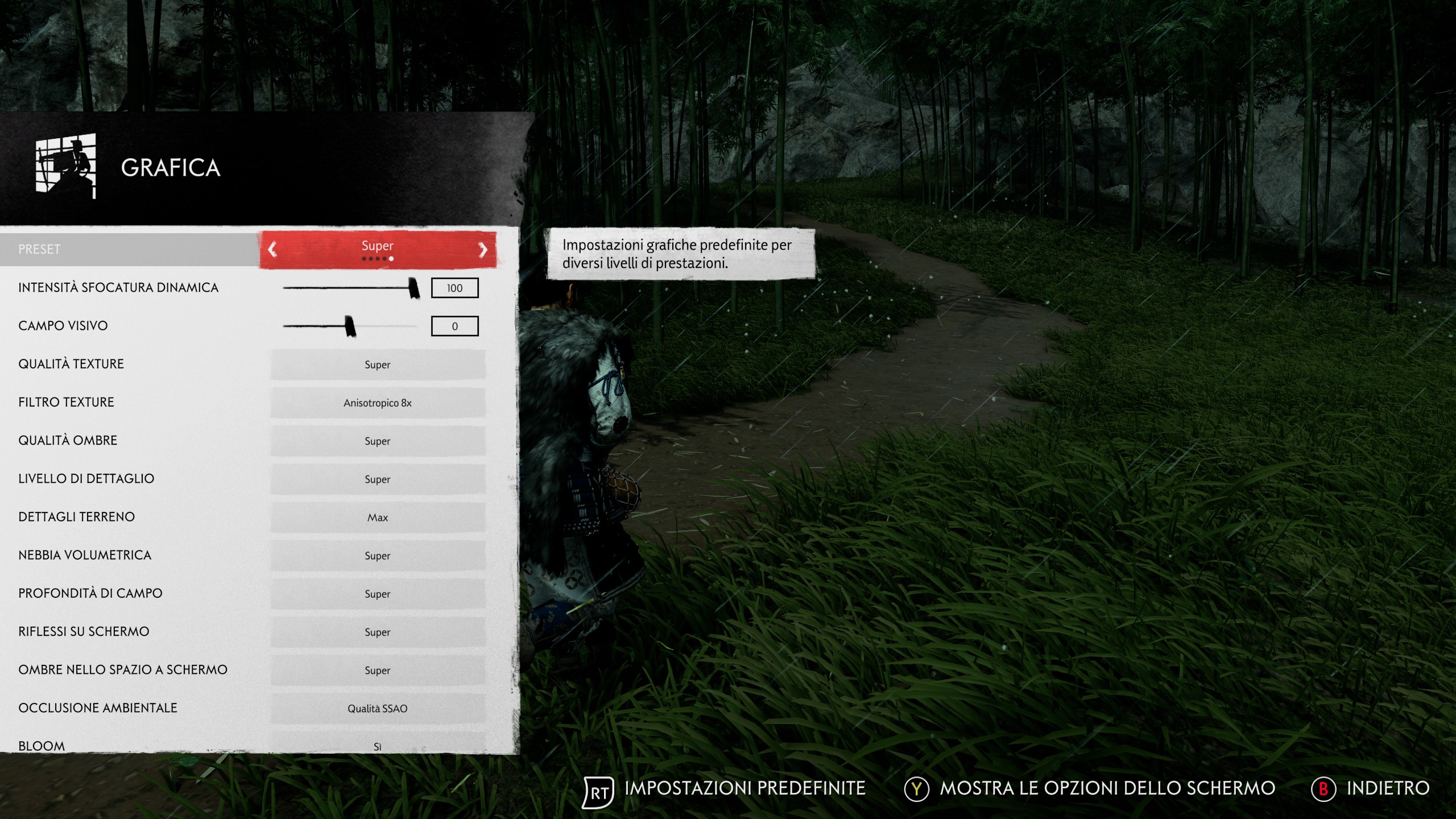 Partiamo dalle basi: la versione PC di Ghost of Tsushima include una vasta opzione di scelte grafiche e di implementazioni tecnologiche, come per esempio il DLSS di NVIDIA o l’AMD FSR 3.0. Il gioco è completamente personalizzabile, offrendoci la possibilità di scegliere tra una risoluzione di dinamica per l’upscaling oppure di impostare i target desiderati utilizzando i vari preset disponibili. Per comodità di scelta, abbiamo deciso di utilizzare il gioco solamente sfruttando il DLSS, navigando tra i preset predefiniti del gioco, tra Max e Super. Il risultato è stato ovviamente molto soddisfacente. Utilizzando l’upscaling di NVIDIA, Ghost of Tsushima riesce in qualsiasi modo a essere stabile tra i 70 e i 90 frame al secondo. Abbiamo testato il titolo su un PC dotato di una NVIDIA GeForce RTX 3060 Ti e un i5-10400F. In modalità Max, il gioco riesce sicuramente a girare meglio, senza nessun calo evidente anche durante le sessioni più concitate. Selezionando invece il preset Super, abbiamo avuto modo di constatare un leggero calo di performance, utilizzando il DLSS, passando da una media di 90 frame al secondo e scendendo, per qualche secondo, anche sotto i 60 fps. Discorso invece completamente diverso se eliminiamo qualsiasi tipo di tecnologia Upscaling: senza sfruttare il DLSS, impostato su qualsiasi tipo di opzione, il gioco richiederà uno sforzo maggiore alla nostra configurazione, almeno per quanto riguarda una risoluzione in QHD.
