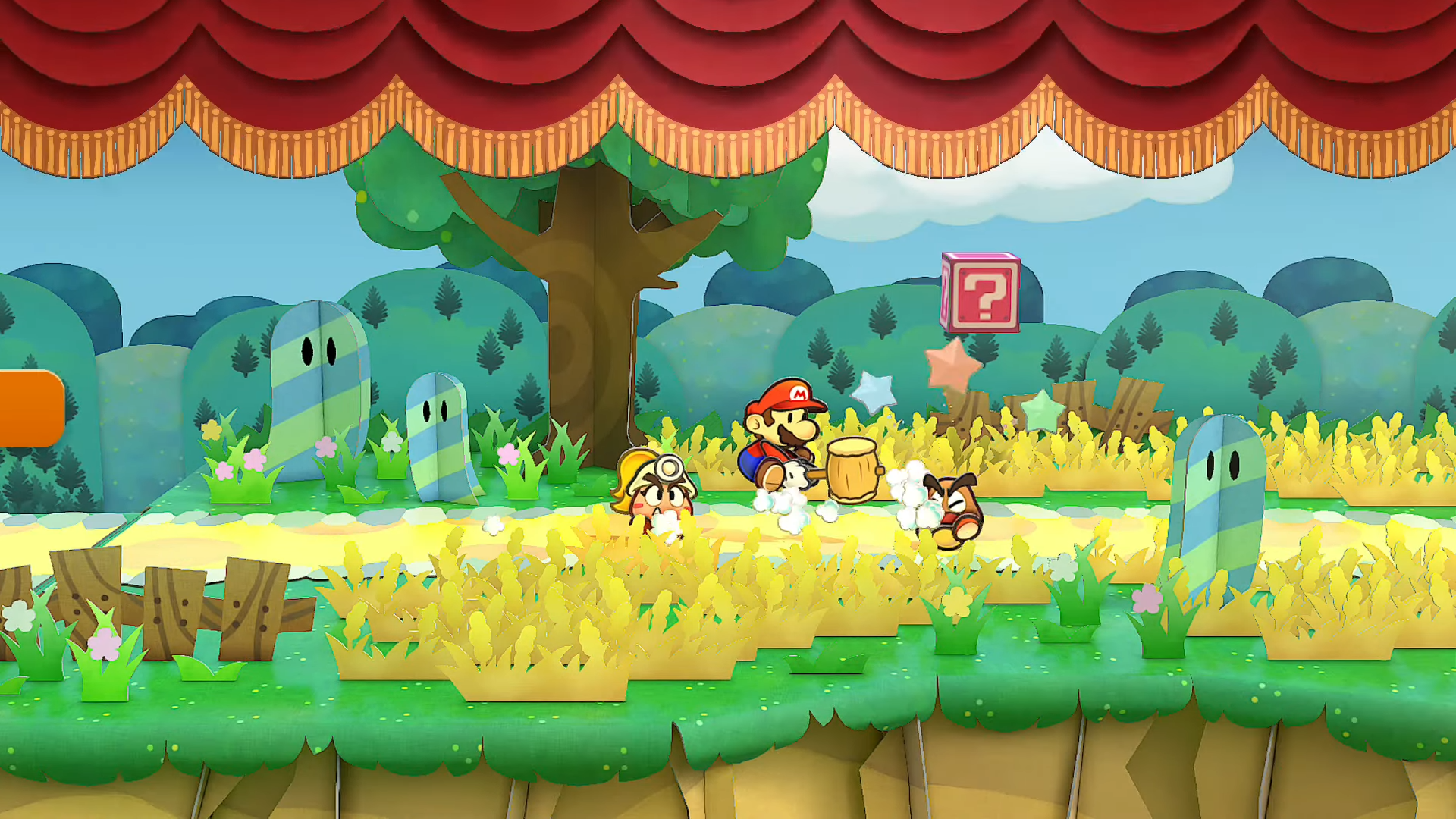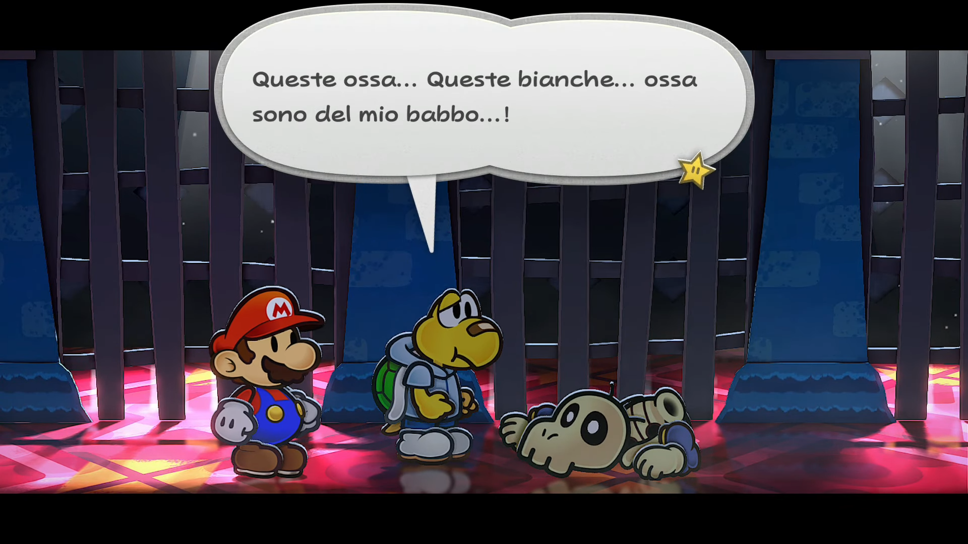 Naturalmente, la ricerca delle stelle magiche non si limita alla conversazione e all’esplorazione, poiché sono le battaglie a turni a svolgere la parte del leone: Mario e il compagno prescelto per lottare insieme a lui possono attaccare con una pletora di colpi differenti oppure proteggersi per mitigare i danni ricevuti, schiacciando i tasti giusti con il dovuto tempismo. Ciò rende le battaglie a turni più interattive e imprevedibili rispetto ad altri giochi di ruolo, e gli attacchi speciali moltiplicano il quantitativo di input necessario per mandarli a segno, anche se spesso finiscono per risultare inutilmente complessi. I combattimenti si svolgono sul palcoscenico di un teatro, dove tanto gli oggetti di scena quanto il pubblico presentano variabili interessanti, perché potrebbero intralciare noi o i nostri avversari a seconda dell’andamento dello scontro. In breve: non saprete mai quali sorprese vi riserverà lo scenario teatrale e fareste meglio a restare sempre in guardia. I veterani dei giochi di ruolo possono inoltre sfruttare un sistema opzionale di Tessere che fornisce ulteriore profondità strategica e consente di personalizzare le abilità di Mario in base allo stile di gioco prediletto, modificando addirittura il livello di difficoltà qualora sceglieste di autoimporvi degli handicap. La nuova edizione per Switch di Paper Mario: Il Portale Millenario è un vero e proprio remake, non una semplice rimasterizzazione: in altre parole, la grafica e il sonoro sono stati completamente rinnovati. Il gioco è fantastico da vedere sia su un televisore da 75 pollici che sul piccolo OLED della console. Rispetto all’originale, il rifacimento colpisce per il nuovo rapporto d’aspetto, la risoluzione più elevata e le ambientazioni ricostruite da zero. La splendida presentazione visiva è accompagnata da canzoni orecchiabili che suonano molto più energiche e potenti rispetto alle musiche dell’originale. I 30 fps attuali non sfigurano più di tanto rispetto ai 60 su GameCube, ma i caricamenti frequenti, la mancanza di mappe e l’eccessivo backtracking guastano in parte un’esperienza che altrimenti sarebbe risultata ineccepibile.