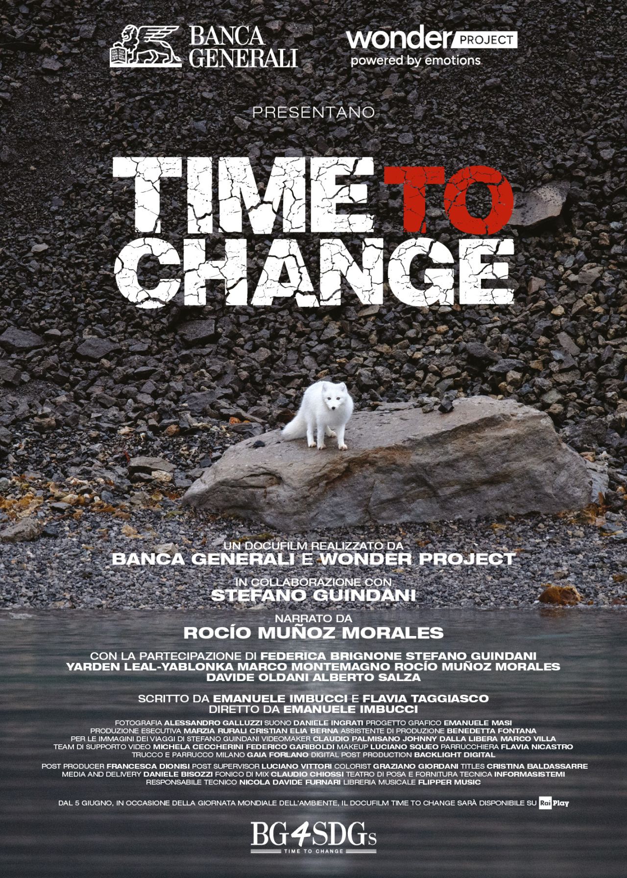 Il docufilm Time To Change, curato dal fotografo Stefano Guindani, per la regia di Emanuele Imbucci, approda il 5 Giugno sul servizio multimediale della Rai, RaiPlay, in occasione della Giornata Mondiale dell’Ambiente, celebrazione stabilita dalle Nazioni Unite per sottolineare l’importanza della protezione e della salvaguardia dell’ambiente e l’impatto che quest’ultimo ha sul benessere dei popoli e sullo sviluppo economico.