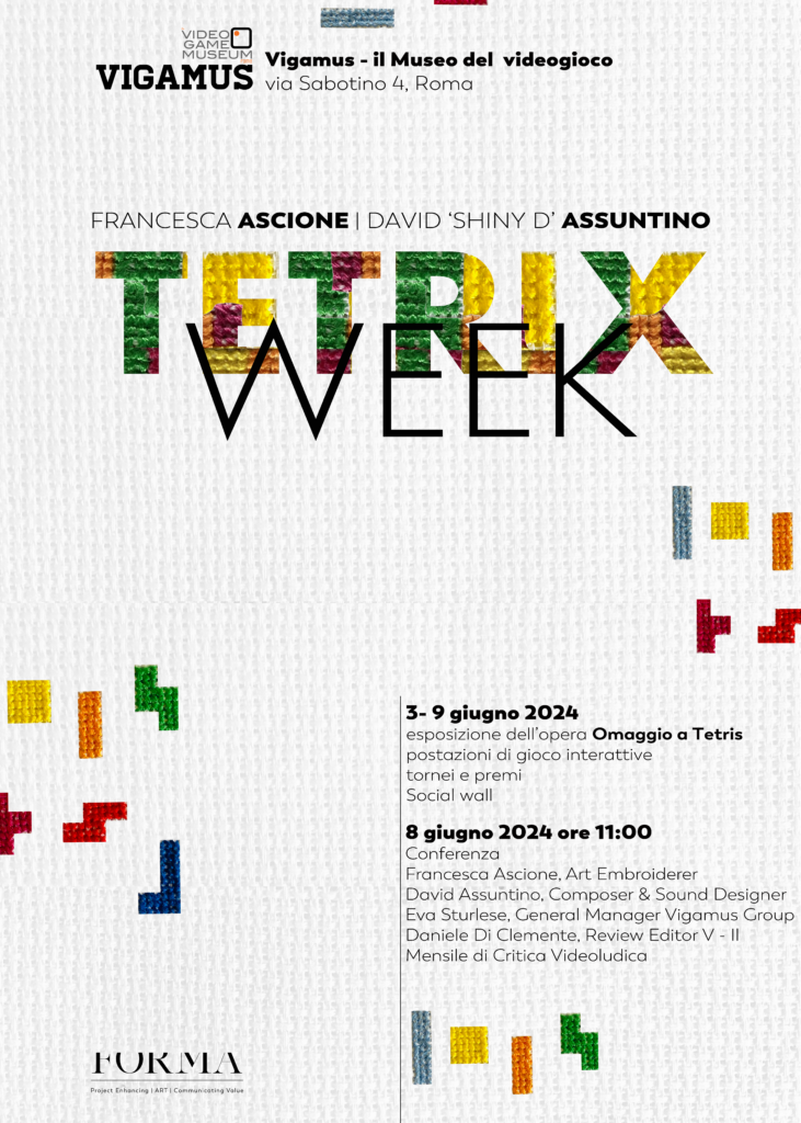 Dal 3 al 9 giugno 2024 non prendete appuntamenti, perché VIGAMUS, il museo del videogioco di Roma, situato in via Sabotino 4, omaggerà il leggendario videogioco Tetris, che ha raggiunto il suo 40° anniversario, con un evento chiamato Tetrix Week.