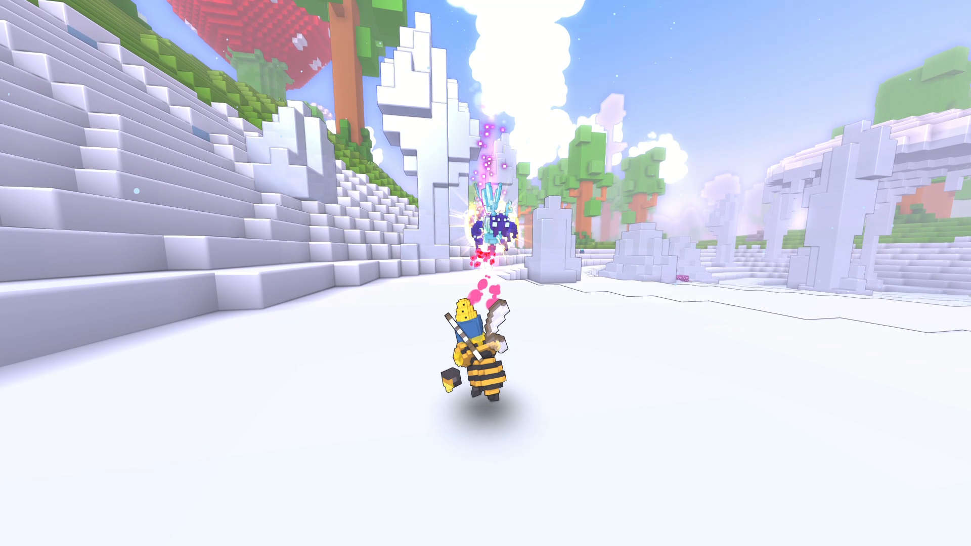 • Un mondo vasto completamente distruttibile: Esplorate reami colorati basati su voxel che includono terre vergini e mondi fatti di caramelle, per poi usare le vostre abilità per distruggerli, blocco dopo blocco.