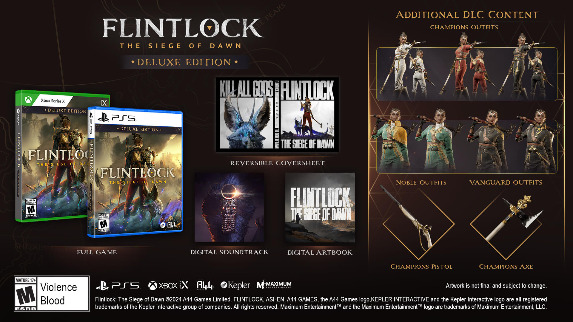 Quest’anno durante l’Xbox Games Showcase 2024, lo studio indie A44 Games e il publisher Kepler Interactive hanno annunciato che l’action-RPG souls-lite Flintlock: The Siege of Dawn verrà lanciato il 18 luglio su  Xbox Series X|S, PlayStation 5 e PC tramite Steam e Epic Games Store. I preordini sono già disponibili per tutte le piattaforme e Flintlock sarà disponibile anche su Game Pass dal day one. Inoltre, una demo è disponibile per PC tramite Steam. La demo permette di giocare l’inizio dell’avventura per poter iniziare ad esplorare il mondo di Kian che è sotto assedio da 10 anni, ed è una buona occasione per iniziare ad immergersi nel sistema di combattimento del gioco. Date un’occhiata al trailer di annuncio in fondo alla news.
