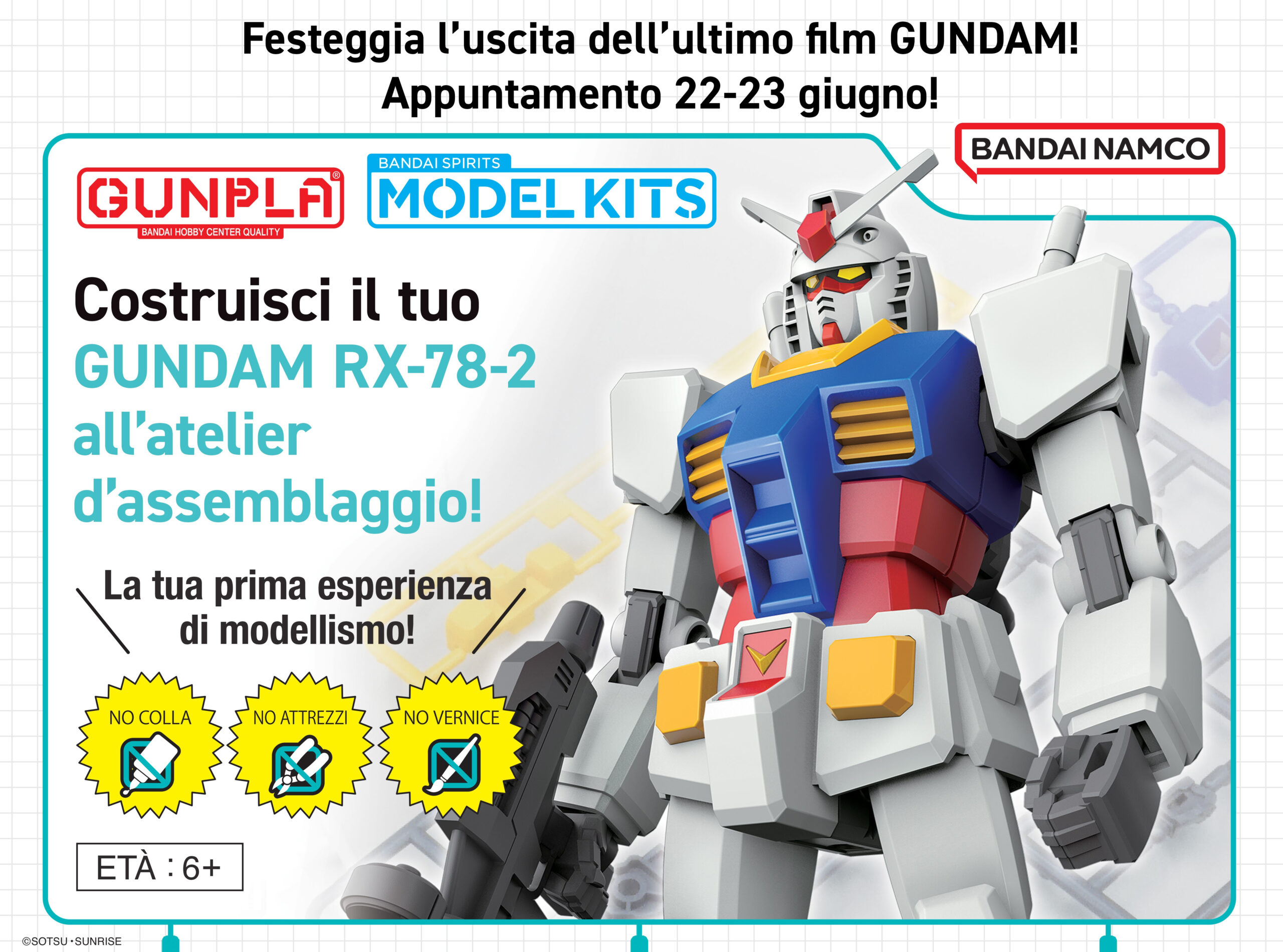 Solo sabato 22 giugno, dalle 16:30 alle 18:30, un atelier a tema Gundam sarà presente presso il The Space Cinema di Vimercate, dove gli spettatori potranno cimentarsi nel costruire il proprio GUNDAM RX-78-2. Un appuntamento da non perdere per tutti i fan della serie.