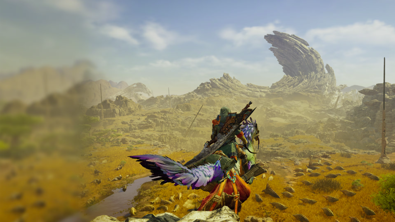 Troviamo fondamentale rimarcare anche un’altra delle aggiunte più interessanti offerte da Wilds: la cavalcatura. Lo sappiamo, non è una novità vera e propria, ma, considerando quello che sarà un mondo di gioco vastissimo e ricco di pericoli, il ruolo di Seikret sembra destinato a ricoprire un ruolo di primissima importanza. Grazie al nuovo alleato, è possibile muoversi in maniera più veloce lungo quella che sembra una mappa enorme, tanto nelle dimensioni quanto nella ricchezza in termini di densità demografica, ma soprattutto si può sfruttare il movimento e le potenzialità della mount anche per gli scontri veri e propri.