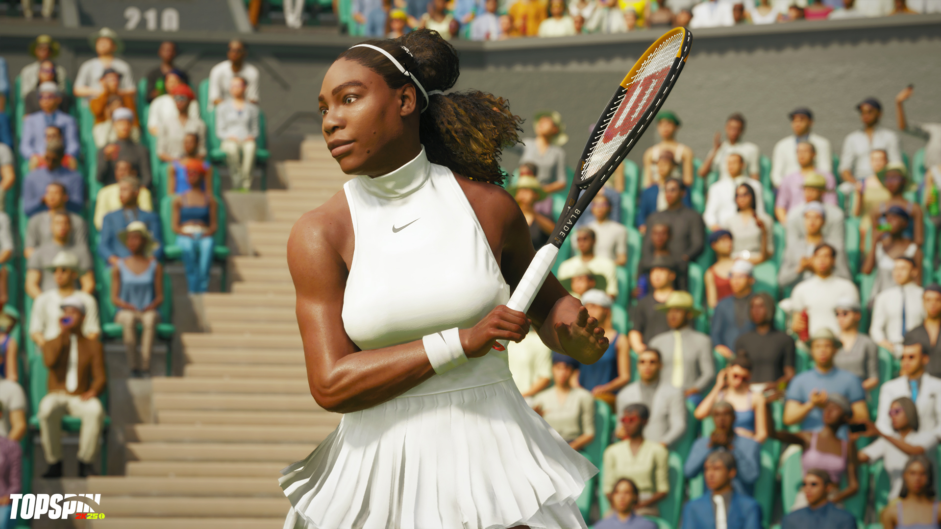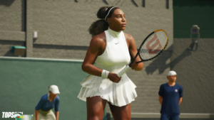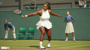 Qui sotto gli screen con il campo di Wimbledon, Serena Williams eFrances Tiafoe, ricordando che recentemente รจ iniziata la seconda stagione di TopSpin 2k25, che ha portato anche Jannik Sinner.