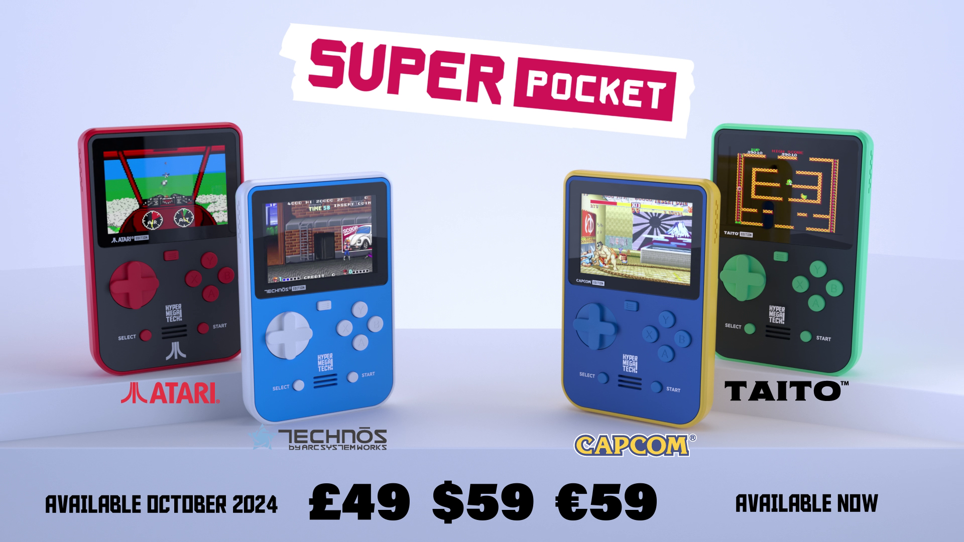 I prossimi due dispositivi Super Pocket in arrivo presso i retailer nel 2024 sono la Atari Edition e la Technos Edition. Ciascuna console è disponibile al prezzo di €59 e può essere preordinata a partire dal 31 luglio prima dell’uscita nell’ottobre 2024.
