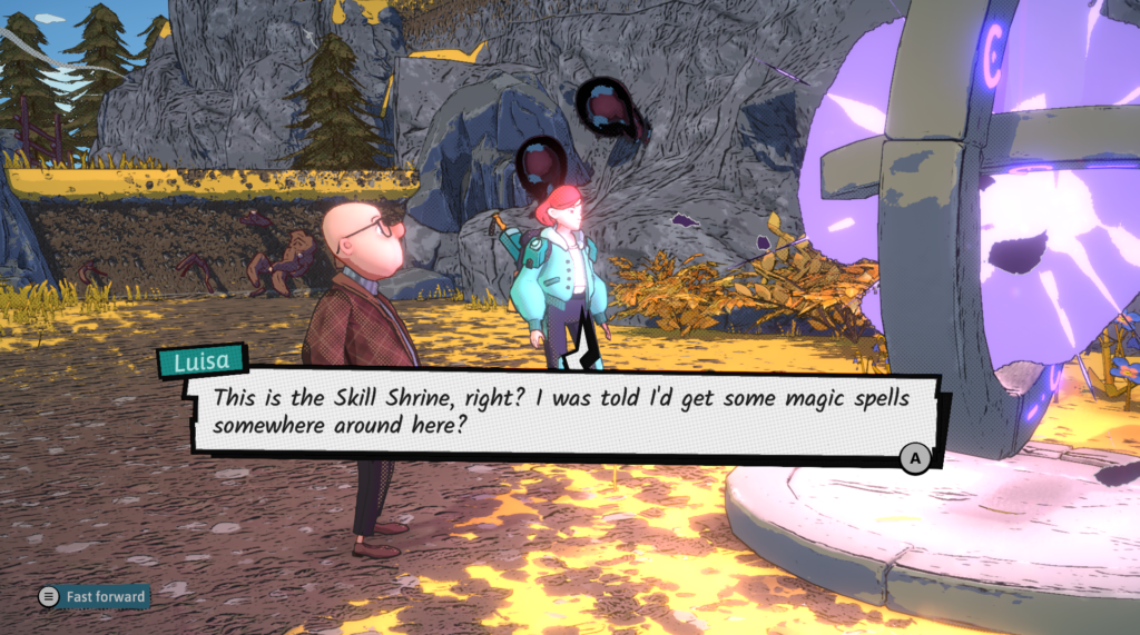 È un cosa non di poco conto perché con l’innanzarsi dell’età media dei giocatori il tempo per giocare è sempre di meno e trovarsi ad esplorare già dall’inizio un mondo vastissimo può rendere frustrante perfino terminare i vari tutorial (Elden Ring batti un colpo) mettendo il titolo da parte per tempi migliori, tempi che chiaramente non arriveranno mai. Da questo punto di vista dobbiamo chiarire anche che lo story-telling, e nella fattispecie i dialoghi, in Dungeons of Hinterberg hanno un peso importantissimo non solo nel decidere cosa farà questo personaggio o quello e se la nostra ultima conoscenza verrà con noi ma anche per arricchire un’esperienza di gioco che sicuramente non usa come perno il combattimento o l’esplorazione bensì la combinazione di tutte quelle che oggi sono le componenti di un videogioco ben bilanciato. Della montagna non ci mancherà nulla dalla fase di arrampicata molto automatizzata ma comunque godibile alle distese di ghiaccio e neve dove andare in snowboard, quest’ultima feature è particolarmente rilassante dopo la quantità enorme di capriole che avremo dovuto fare nel corso dei combattimenti per evitare i colpi dei cattivoni che nonostante non mettano mai seriamente in pericolo la nostra vita sono molto fastidiosi, soprattutto i minion. Un’altra cosa che si nota abbastanza presto è la gestione della telecamera che a volte rende il gioco più caotico di quello che in realtà è.