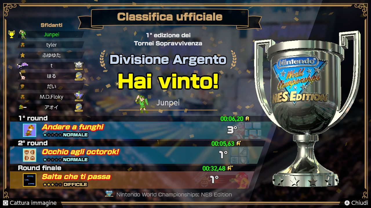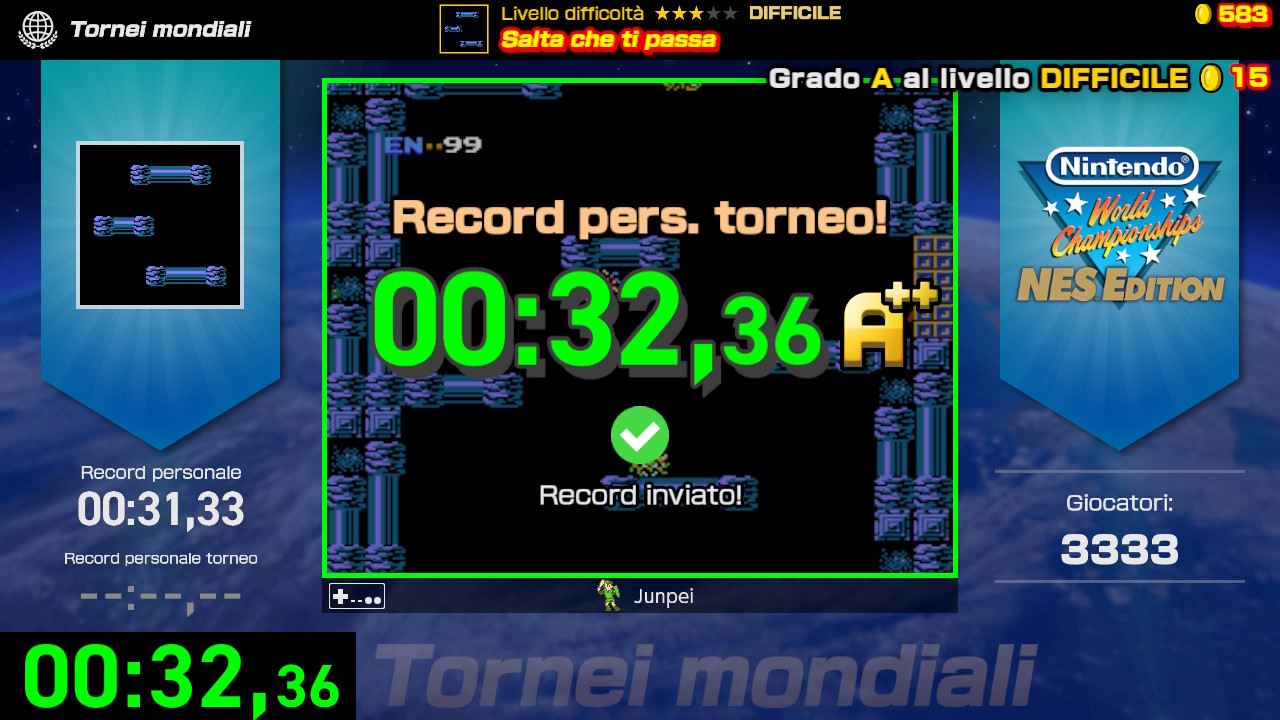 Tuttavia, Nintendo World Championships NES Edition non è solo una fornitissima palestra per migliorare le tue abilità di speedrunning. Naturalmente, la natura competitiva di un torneo fa sì che sia più divertente da giocare con altri giocatori, e devo dire che è qui che il gioco brilla davvero. Per quanto sembri incredibile a dirsi, il coinvolgimento agonistico è talmente elevato, anche quando siamo in gara con gli speedrunner più esperti per colpa dello sciagurato algoritmo di selezione randomica, che persino arrivando ultimi o interrompendo la prestazione perché abbiamo perso ogni speranza veniamo comunque motivati ad osservare gli altri “atleti”, magari per carpire qualche segreto da fare nostro o per puro e semplice diletto. Insomma, devo proprio ammettere che il ragequit non è mai stato così divertente!