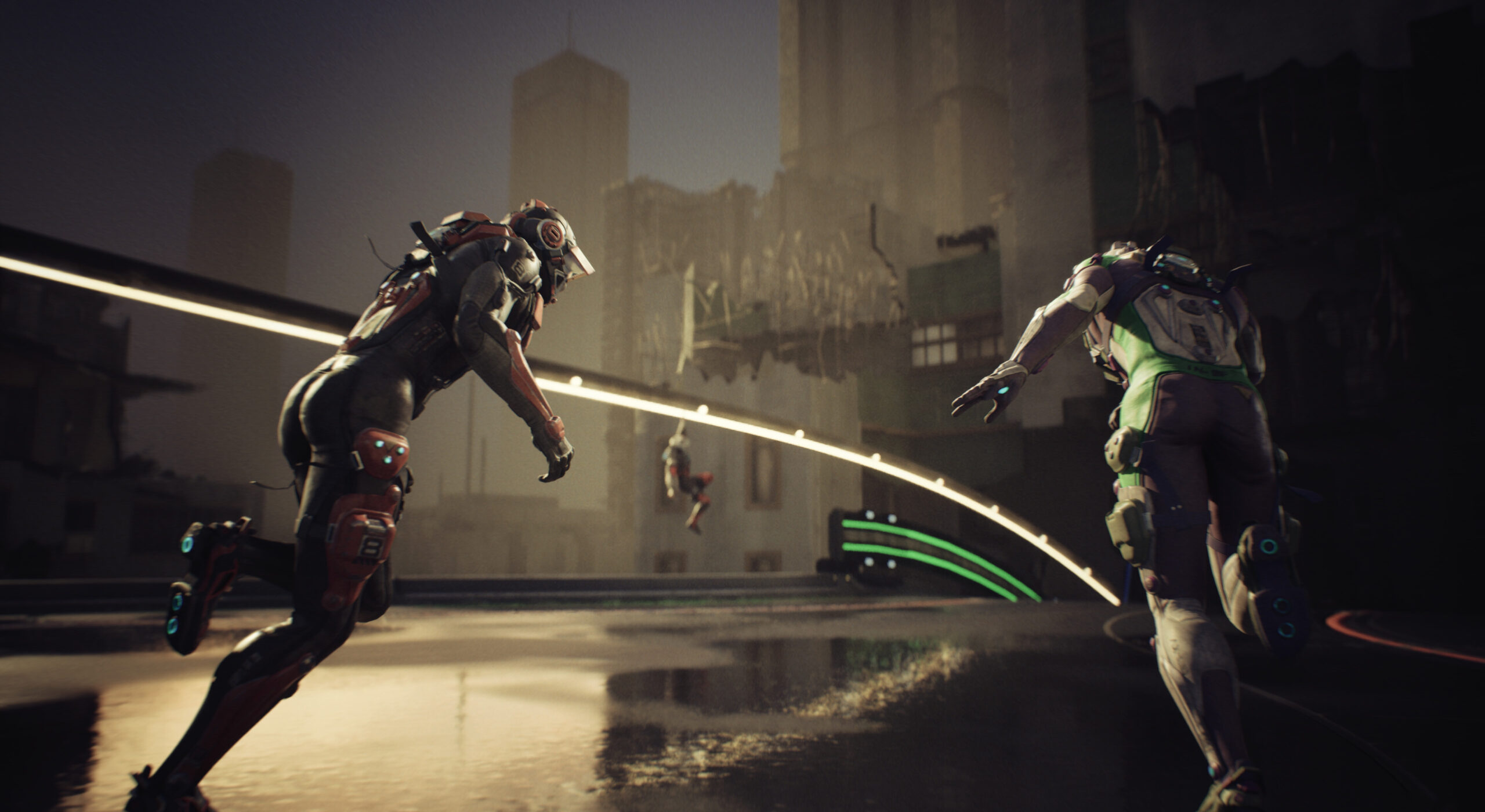 I corridori di DeathSprint 66 possono approfittare di rampe e ringhiere per lanciarsi in dinamiche acrobazie.