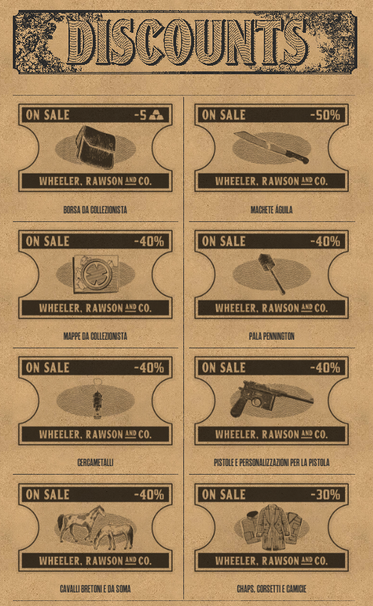 Oggetti cosmetici e altro: nel corso di questo mese si può ricevere la bandana con motivi nera se si gioca al titolo. Completando un round degli eventi Free Roam Sciacallaggio o Uovo di Condor si può ottenere un cappello con gardenie viola. Completando per tre giorni di fila le sfide giornaliere si può ottenere come ricompensa un’Emote gratis. Un nuovo abito creato da terryuch, della community di Reddit reddeadfashion, ispirato alla figura dell’audace esploratore e sarà disponibile gratuitamente sulle pagine del Catalogo Wheeler, Rawson & Co. I Chaps Griffith, la gonna con orlo rialzato, il poncho Prieto, gli stivali Bowyer, la giacca Charro e il corsetto Chambliss sono di nuovo in vendita a prezzi scontati per un tempo limitato, fino al 2 settembre.